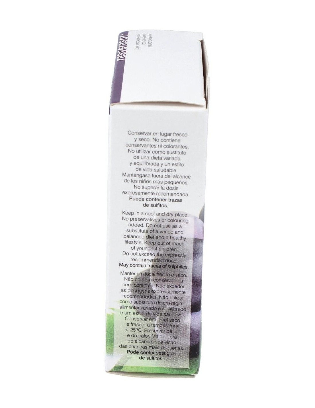 JUGO DESHIDRATADO DE LA PIEL Y SEMILLAS DE UVAS NEGRAS (57,5%). ESTABILIZADORES: ALMIDÓN DE ARROZ. CELULOSA MICROCRISTALINA.