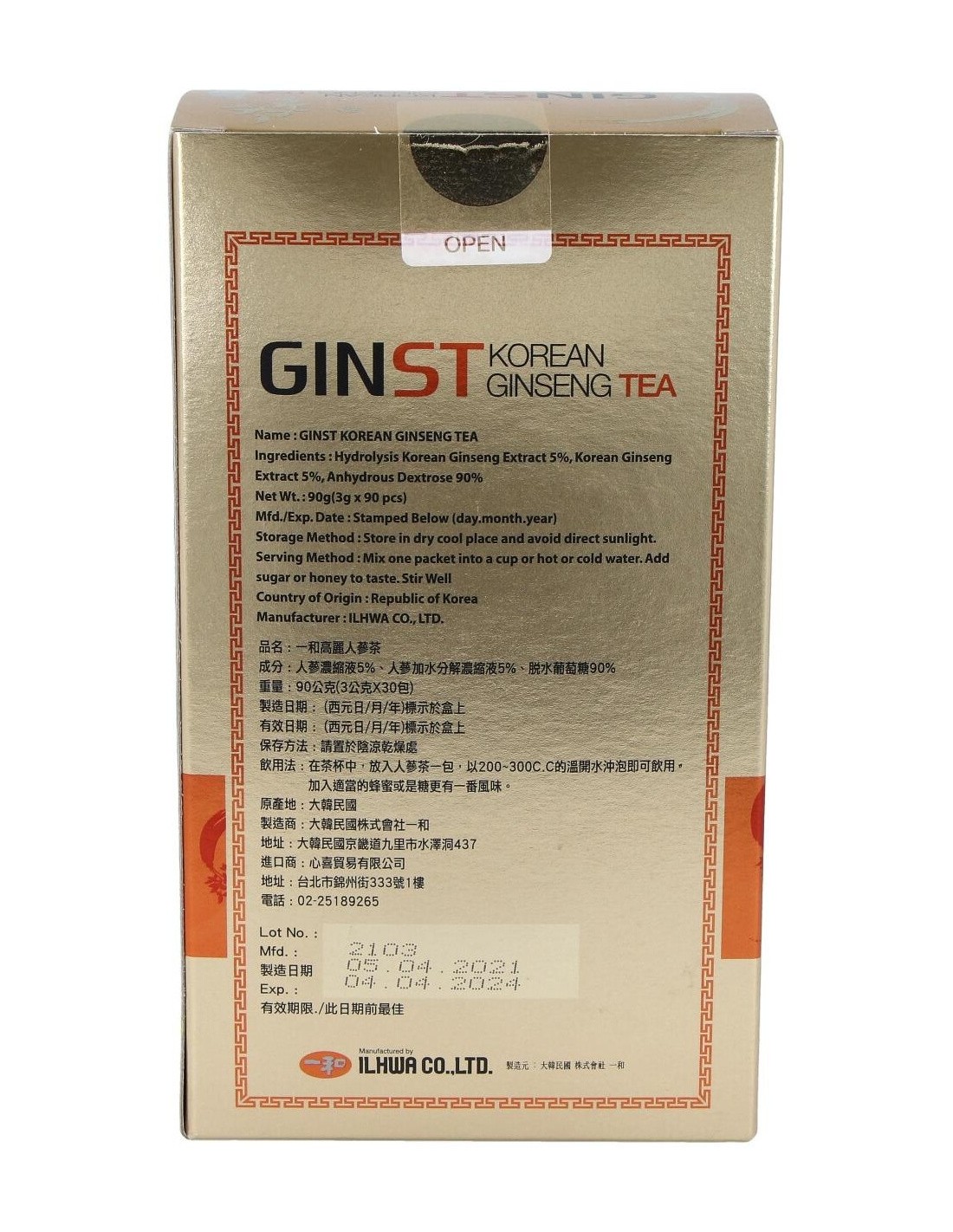 Korean Ginseng Tea Il Hwa (Ginst15) 30Sbrs. de Tongil
