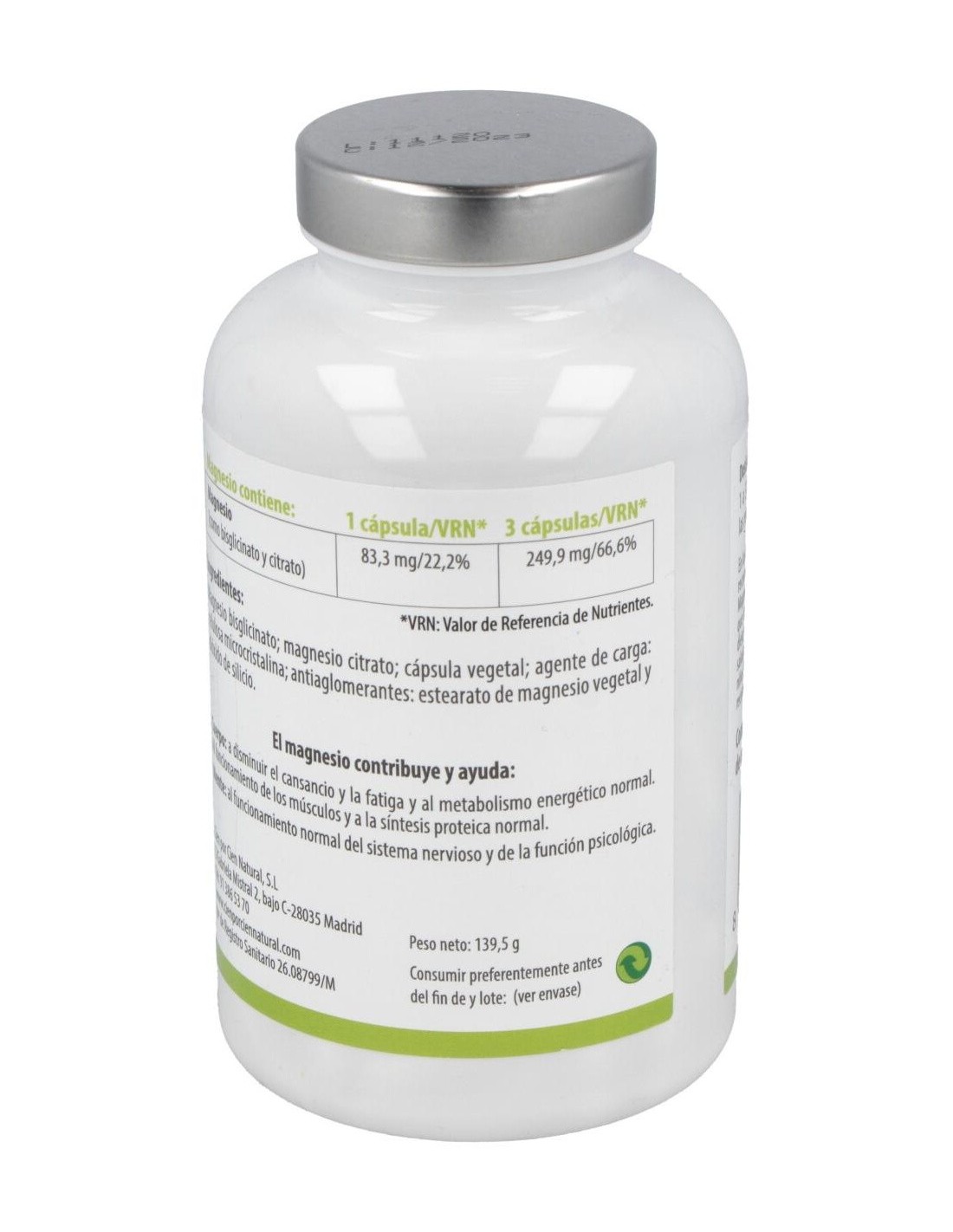 MAGNESIO BISGLICINATO; MAGNESIO CITRATO; CÁPSULA VEGETAL; AGENTE DE CARGA: CELULOSA MICROCRISTALINA; ANTIAGLOMERANTES: ESTEARATO DE MAGNESIO VEGETAL Y DIÓXIDO DE SILICIO.
