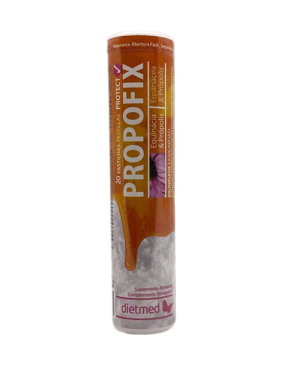 Sorbitol, azúcar granulado, Extracto seco de própolis, Echinacea purpurea L. (Equinácea; Extracto de la raíz conteniendo al menos 4% de polifenoles), ácido L ascórbico, aroma de Mentha x piperita L. (Menta; aceite esencial), antiaglomerantes: estearato de magnesio dióxido de silicio.