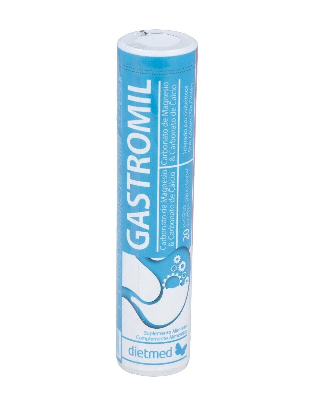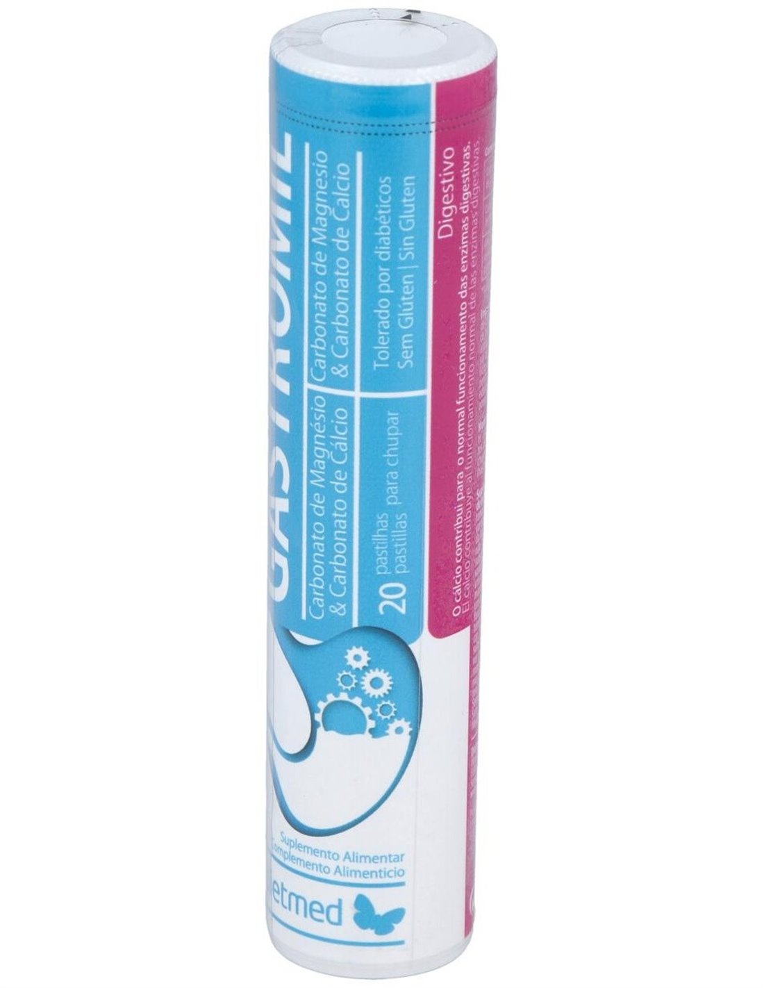 Contiene calcio, que contribuye al funcionamiento normal de las enzimas digestivas. Comprimidos para chupar.
