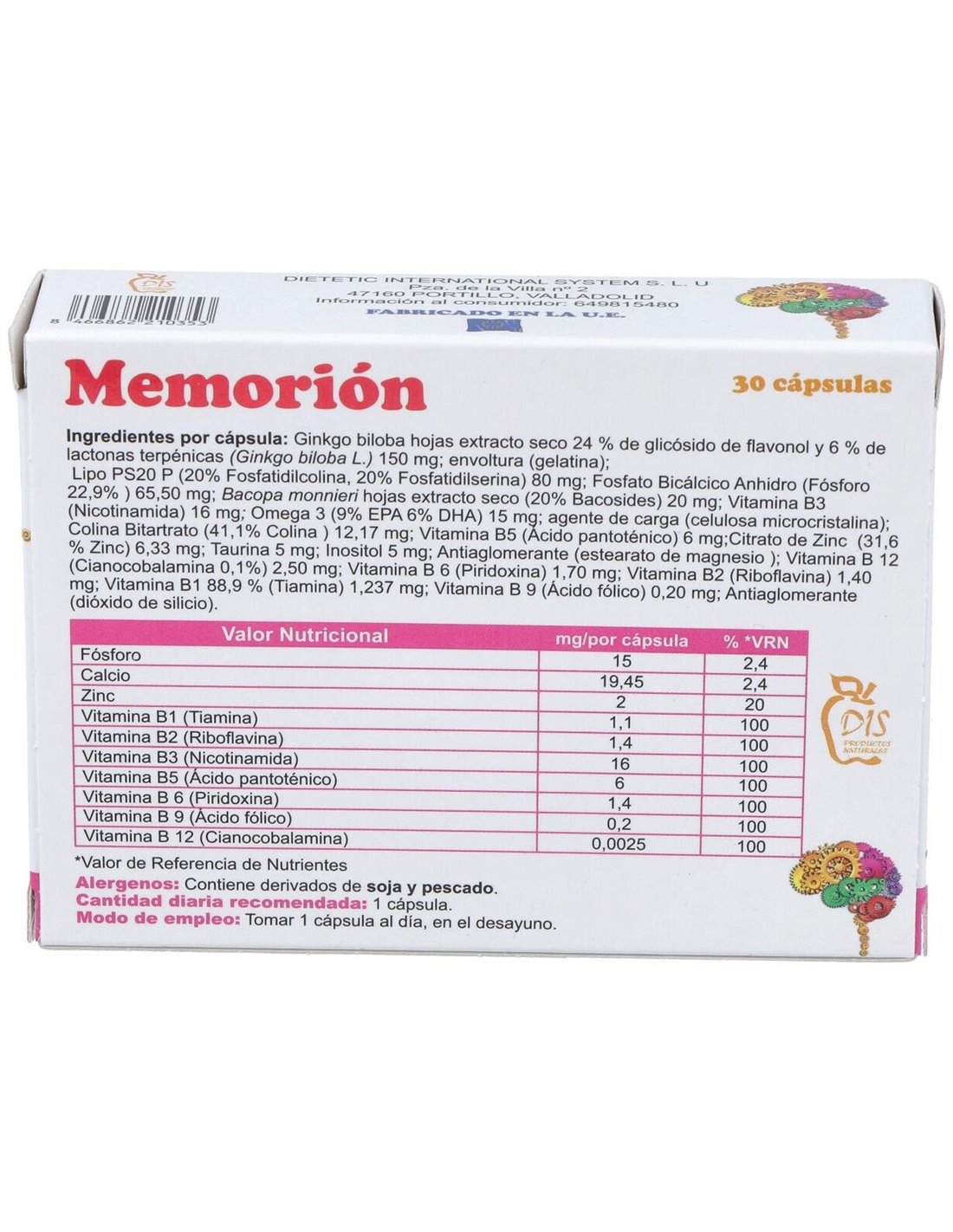 Complemento alimenticio en formato cápsula y elaborado a base de ingredientes que están indicados para ayudar a mejorar los niveles de concentración y a un rendimiento intelectual normal. Especialmente útil para estudiantes en época de exámenes, pérdida de memoria, falta de atención, retrasar el envejecimiento de las neuronas, estrés y personas hiperactivas.
