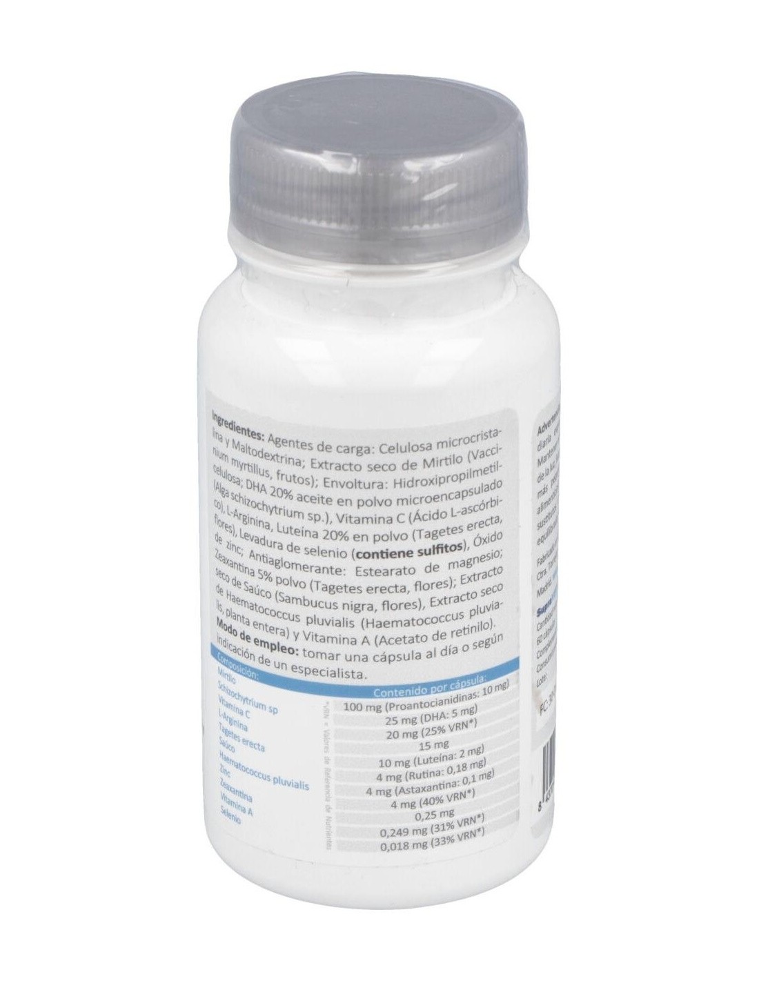 Complemento alimenticio con base de algas y varios nutrientes entre ellos Vitamina C, Zinc, Mirtilo y Levadura de Selenio que refuerzan el cuidado de la vista en adultos. Ideal para las personas que pasan muchas horas delante de una pantalla ya que el mirtilo ayuda a que los ojos toleren más la luz, mejora la visión nocturna y la vista en general.