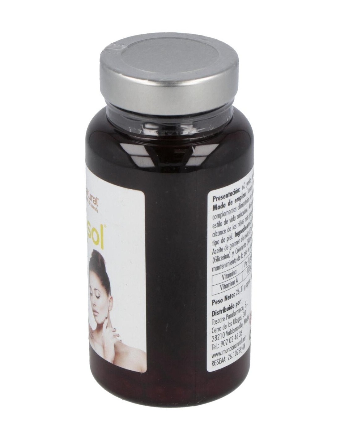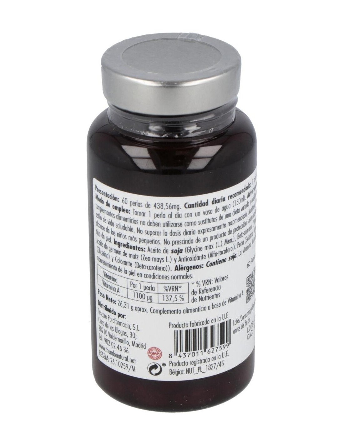 Complemento alimenticio a base de vitamina A. La vitamina A contribuye al mantenimiento de la piel en condiciones normales.