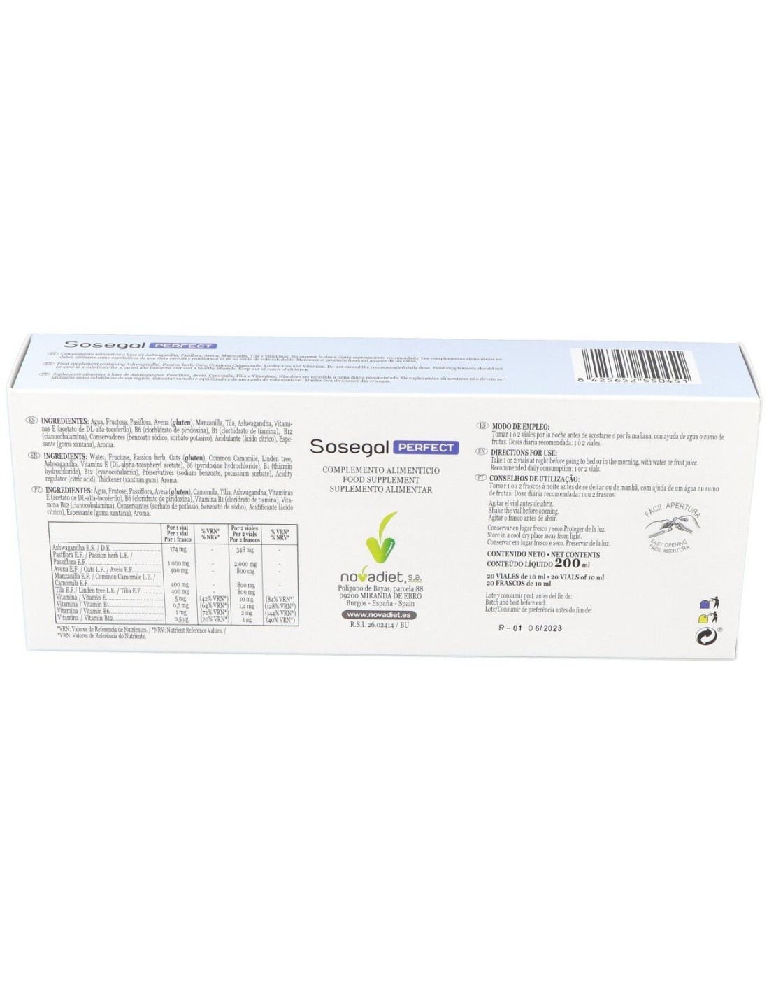 Los viales Novadiet Sosegal Perfect son tu aliado perfecto para esas épocas en las que estás más nervioso y alterado, con las consecuencias que ello conlleva, y te ayudará a estar más tranquilo y feliz durante el día y a descansar de forma adecuada durante la noche.
