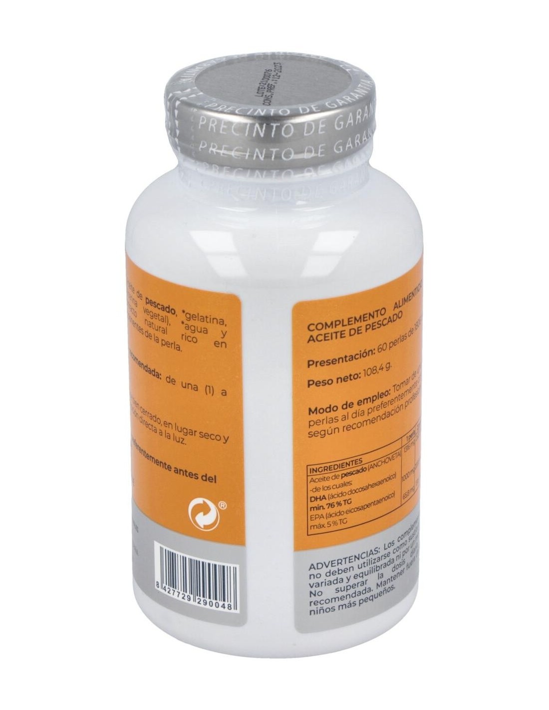 Complemento alimenticio a base de aceite de pescado. El DHA contribuye a mantener una función normal cerebral, de la visión, del corazón, de concentraciones normales de triglicéridos en sangre, del mantenimiento de una presión arterial normal, etc.