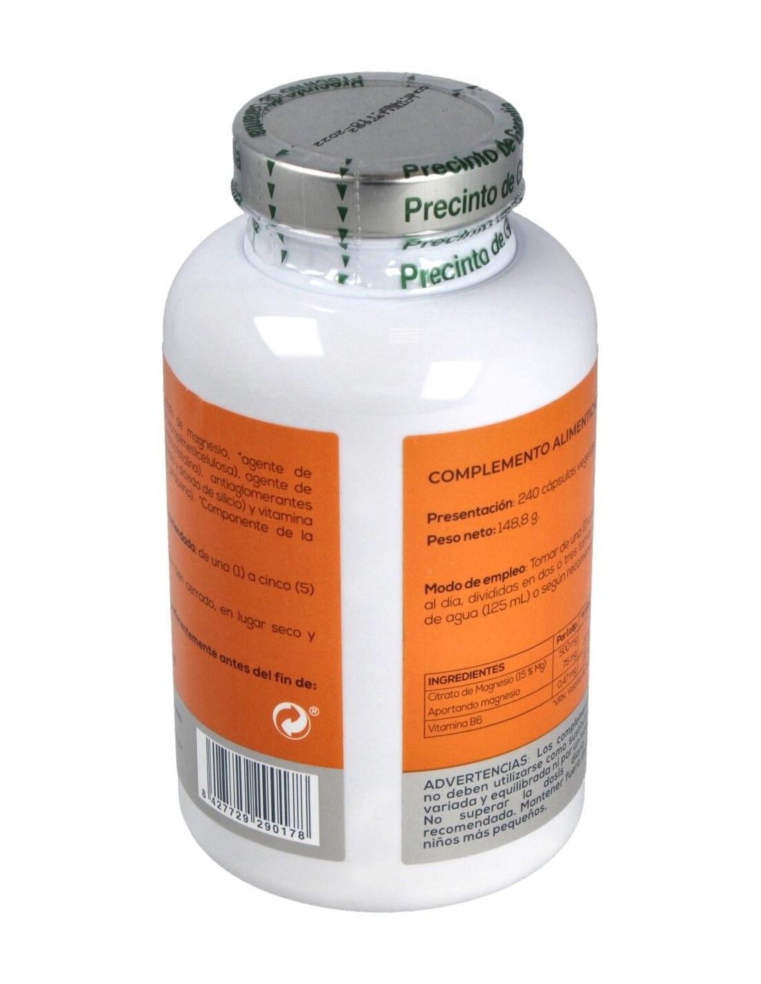 Suplemento a base de citrato de magnesio y vitamina B6. Las cápsulas de citrato de magnesio, contienen un 15% de magnesio elemental, es decir, 500 mg de citrato de magnesio contienen 75 mg de magnesio elemental. El citrato de magnesio presenta una muy buena biodisponibilidad y puede ser absorbido de forma óptima por el cuerpo.
