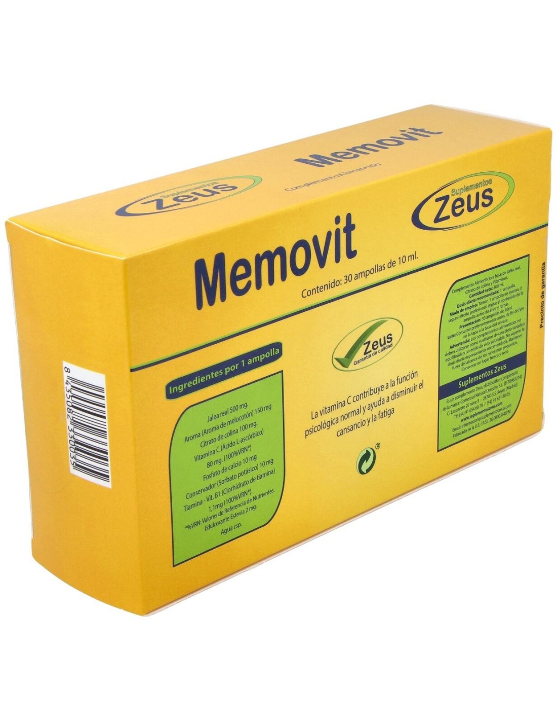 Zeus Memovites un complemento alimenticio que ayuda al rendimiento intelectual y a la memoria gracias a su fórmula con jalea real, calcio, y vitaminas.