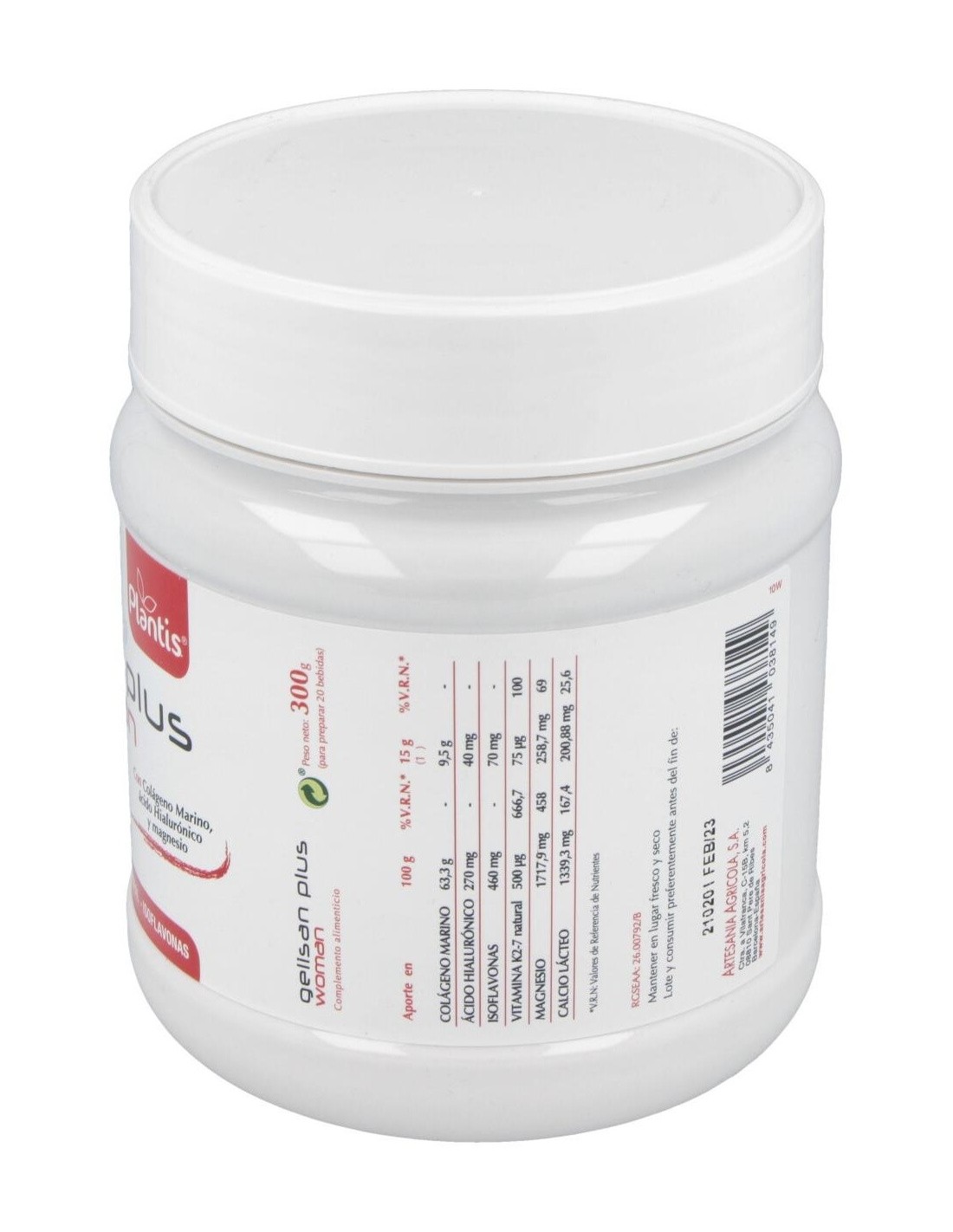 20% en isoflavonas) ácido hialurónico, edulcorantes (acesulfamo K, sucralosa, neoesperidina D.C), antiaglomerante (dióxido de silicio), vitamina K2-7 natural (MenaquinGold®).