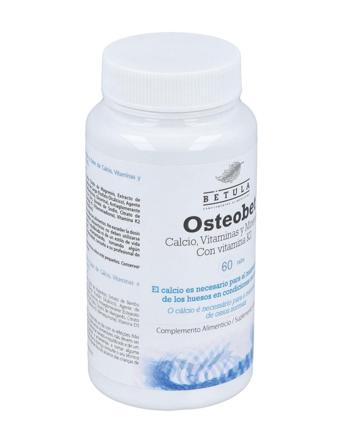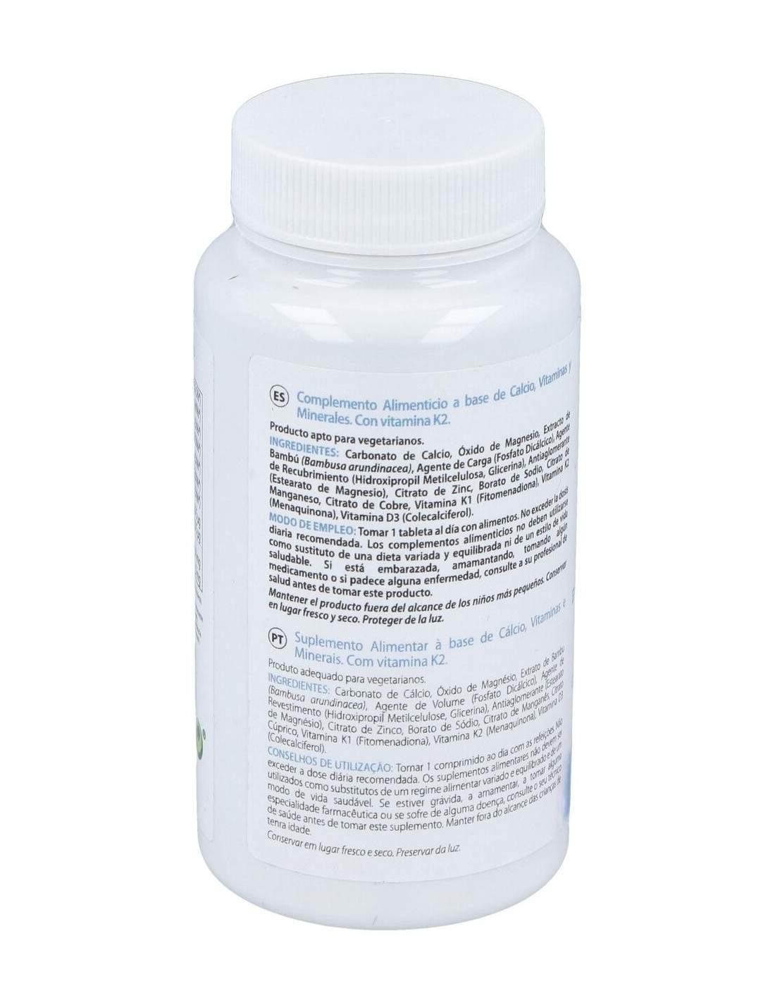 Complemento alimenticio que contiene buenos niveles de calcio, necesario para el mantenimiento de los huesos en condiciones normales. Con vitaminas D y K, magnesio, zinc, manganeso, vitamina K2 (Menaquinona), cobre, boro y silicio. El tejido óseo está en constante renovación y debe su rigidez a los cristales de hidroxiapatita (formados por calcio y otros minerales) y a proteínas como el colágeno.Apto para vegetarianos. Consultar a un médico en caso de embarazo, periodo de lactancia o toma de medicamentos.
