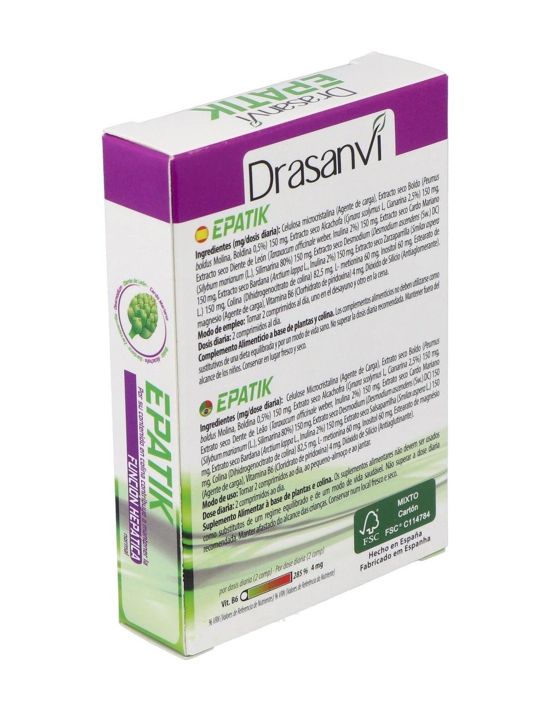 Drasanvi Epatik Detox es un complemento alimenticio que te aporta un extra de colina para favorecer la función normal del hígado y ayudar a eliminar toxinas del organismo.