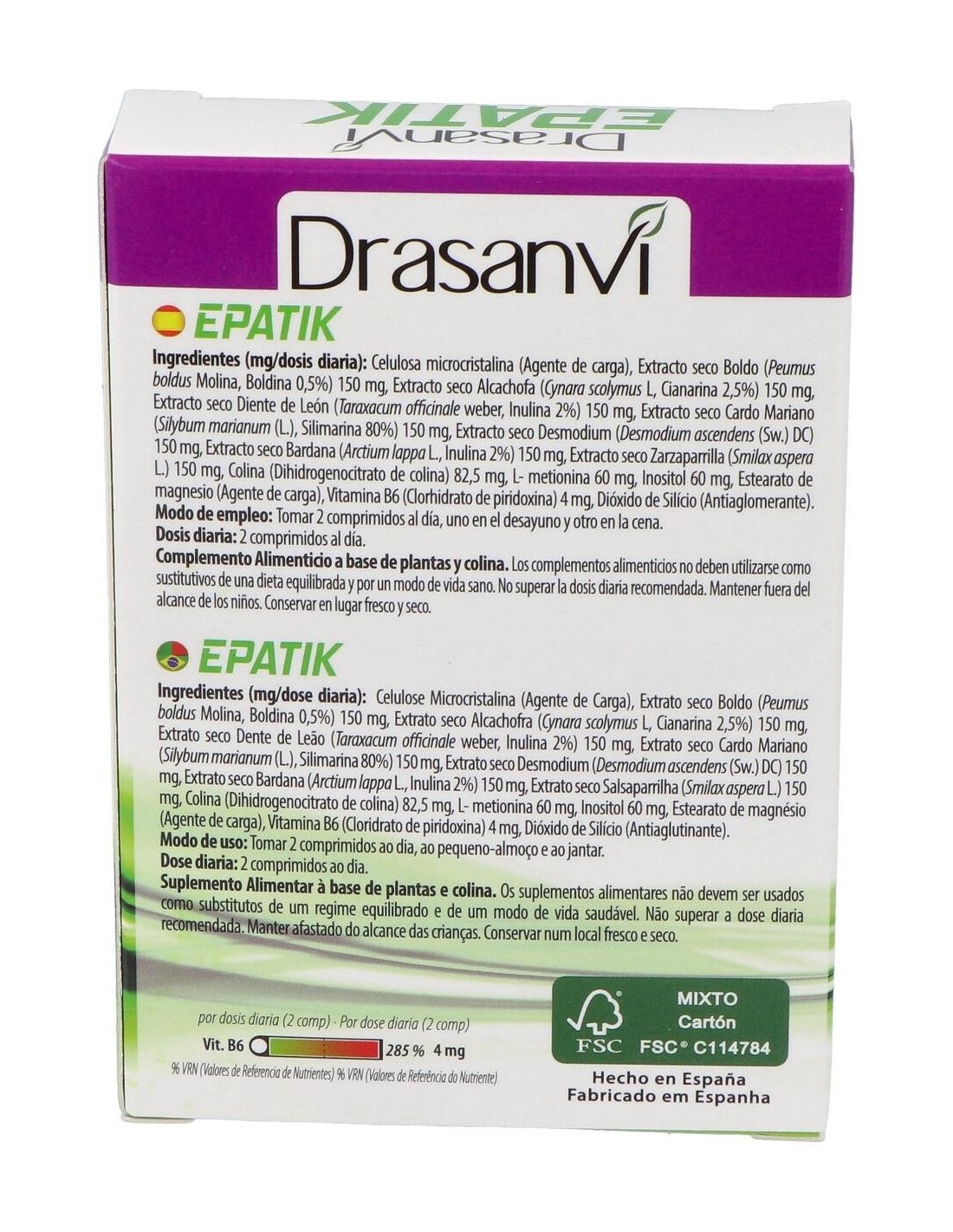 Además de la colina, la fórmula de Drasanvi Epatik Detox se completa con hasta 10 ingredientes naturales como son el boldo, la alcachofa, la zarzaparrilla, el diente de león, la bardana, además de otros extractos de elevada calidad.