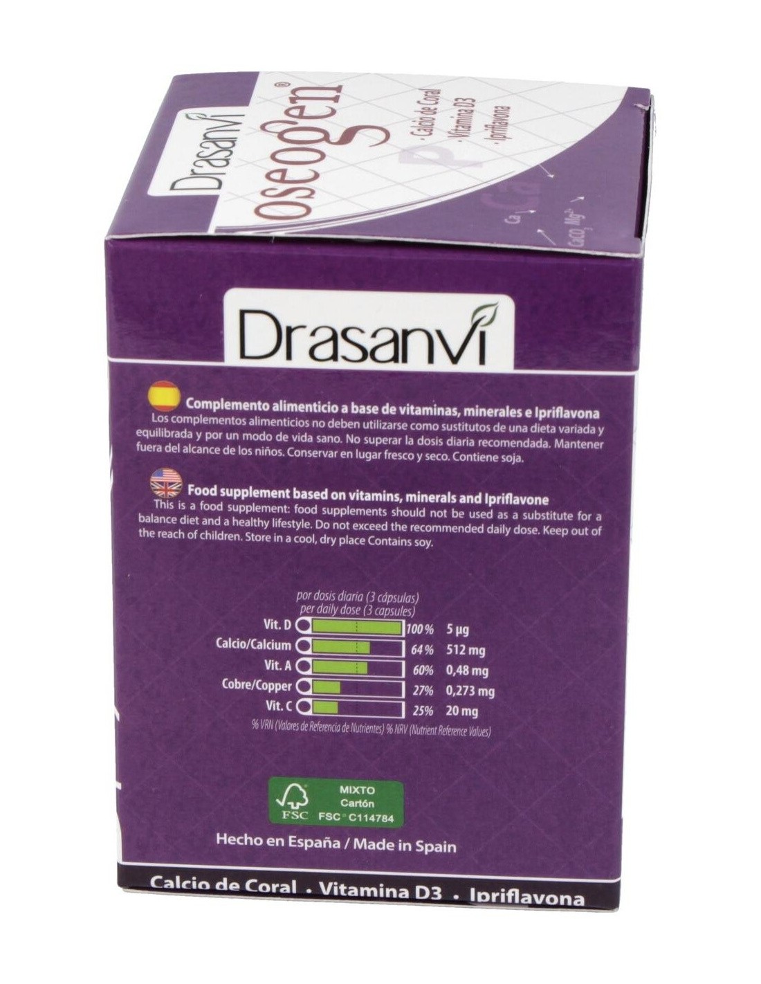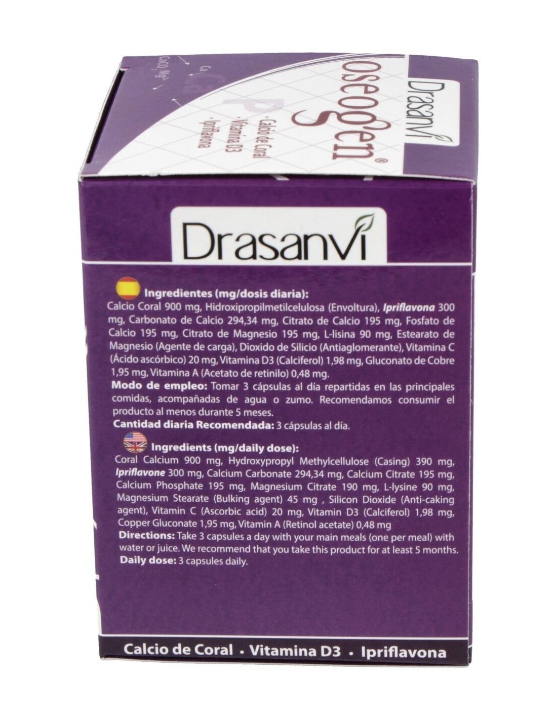 Contribuye al correcto funcionamiento de los huesos en condiciones normales. Es un complemento alimenticio que incorpora en su composición nutrientes como la ipriflavona y la lisina, reforzado con 3 minerales y 3 vitaminas. Incorpora, además, cuatro fuentes diferentes de calcio: Carbonato de calcio, citrato de calcio, fosfato de calcio y calcio de coral.