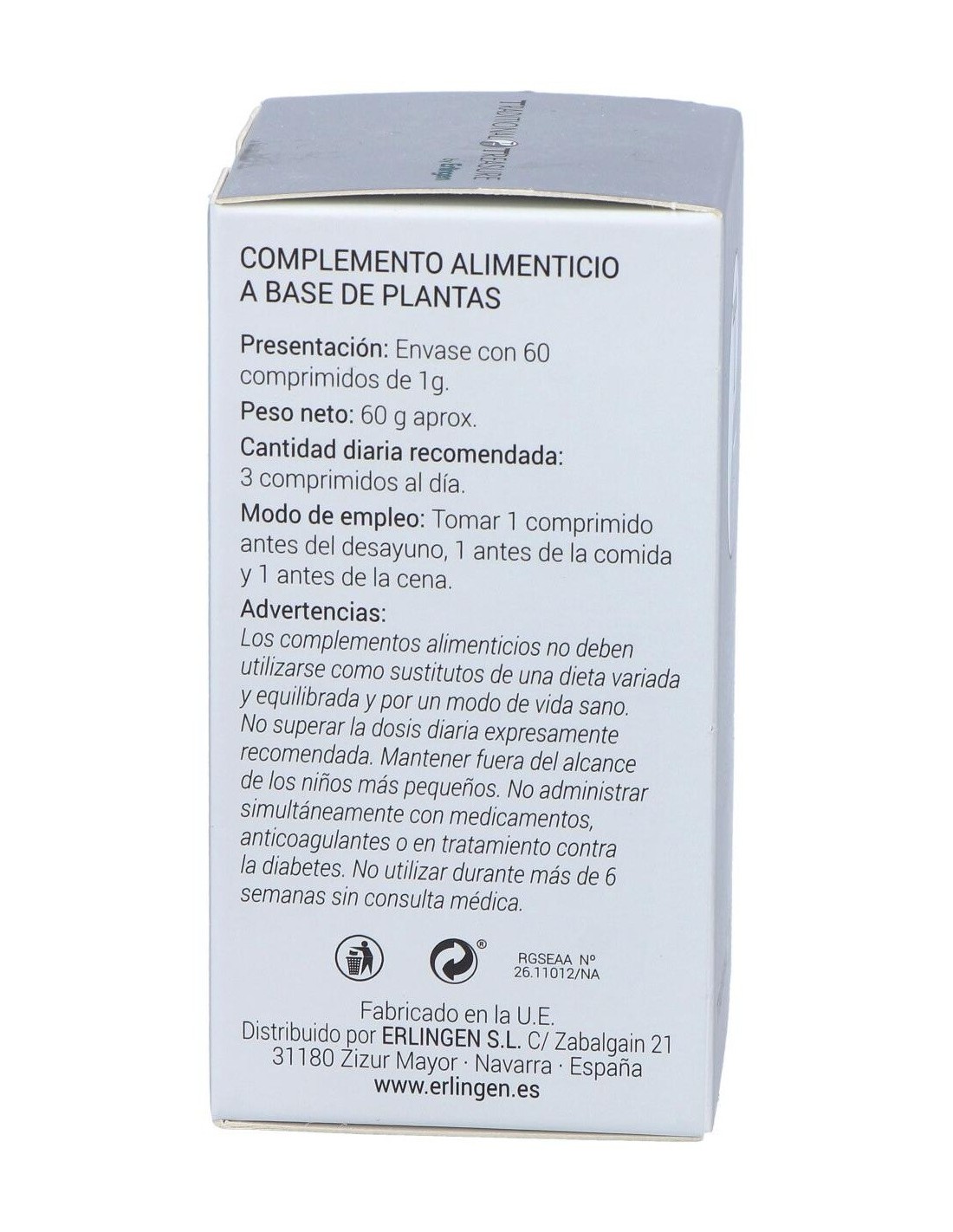 Agentes de carga (Celulosa microcristalina y Maltodextrina), Plantago (Plantago psyllium L.) 225 mg, Remania (Rehmannia glutinosa (Gaertn.) DC.) 225 mg, Angelica (Angelica sinensis (Oliv.) Diels) 195 mg, Gardenia (Gardenia jasminoides J. Ellis.) 195 mg, Alisma (Alisma orientale (Sam.) Juz.) 195 mg, Escutelaria (Scutellaria baicalensis Georgi) 195 mg, Genciana (Gentiana lutea L.) 120 mg, Bupleurum (Bupleurum chinense DC.) 90 mg, Regaliz (Glycyrrhiza glabra L.) 60 mg y Agente de carga (Estearato de magnesio).