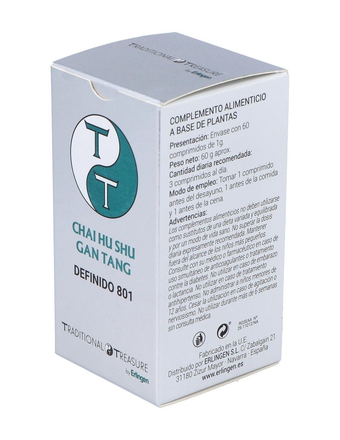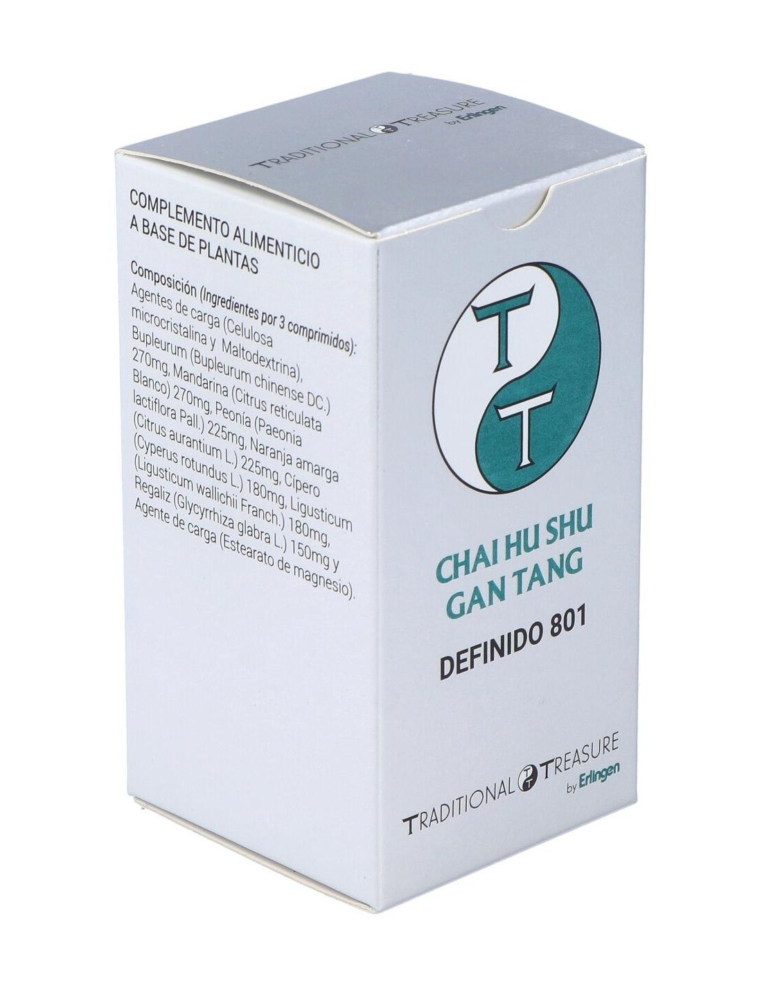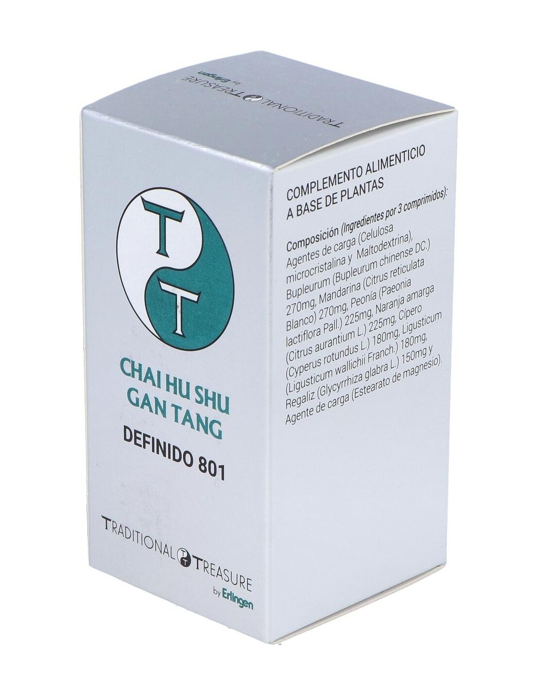 Agentes de carga (Celulosa microcristalina y Maltodextrina), Bupleurum (Bupleurum chinense DC.) 270 mg, Mandarina (Citrus reticulata Blanco) 270 mg, Peonía (Paeonia lactiflora Pall.) 225 mg, Naranja amarga (Citrus aurantium L.) 225 mg, Cípero (Cyperus rotundus L.) 180 mg, Ligusticum (Ligusticum wallichii Franch.) 180 mg, Regaliz (Glycyrrhiza glabra L.) 150 mg y Agente de carga (Estearato de magnesio).
