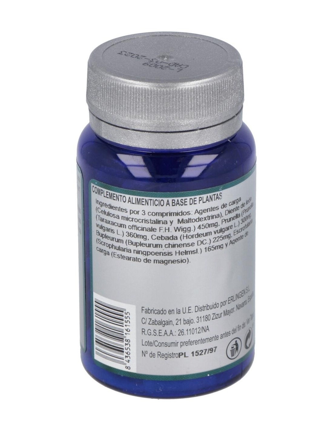 Agentes de carga (Celulosa microcristalina y Maltodextrina), Diente de león (Taraxacum officinale F.H. Wigg.) 450 mg, Prunella (Prunella vulgaris L.) 360 mg, Cebada (Hordeum vulgare L.) 300 mg, Bupleurum (Bupleurum chinense DC.) 225 mg, Escrofularia (Scrophularia ningpoensis Helmsl.) 165 mg y Agente de carga (Estearato de magnesio).