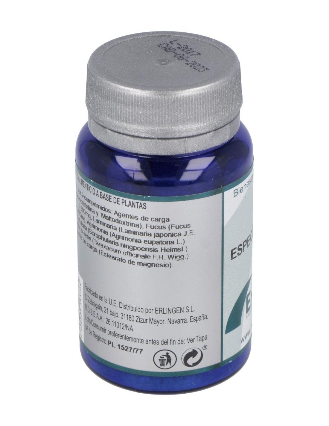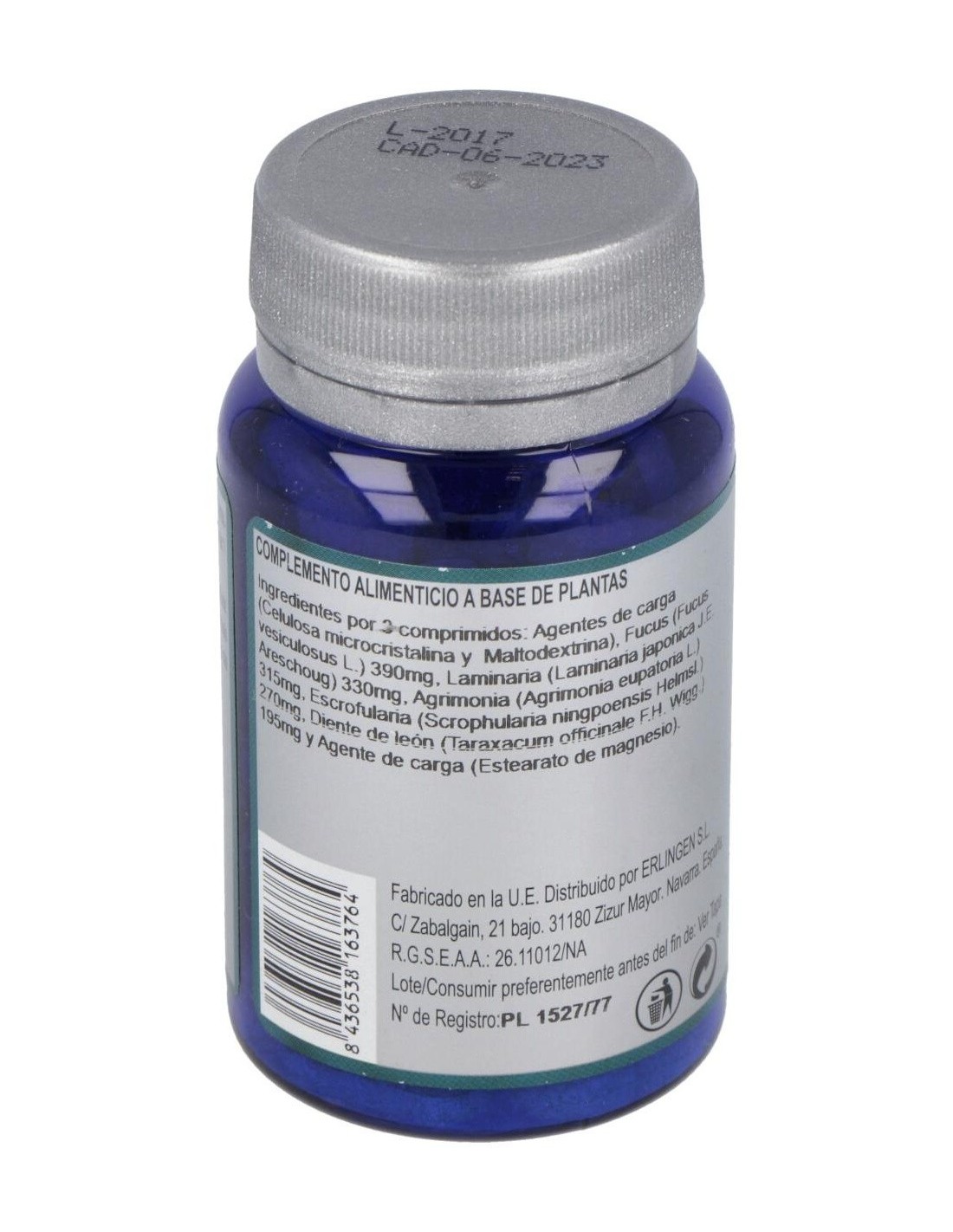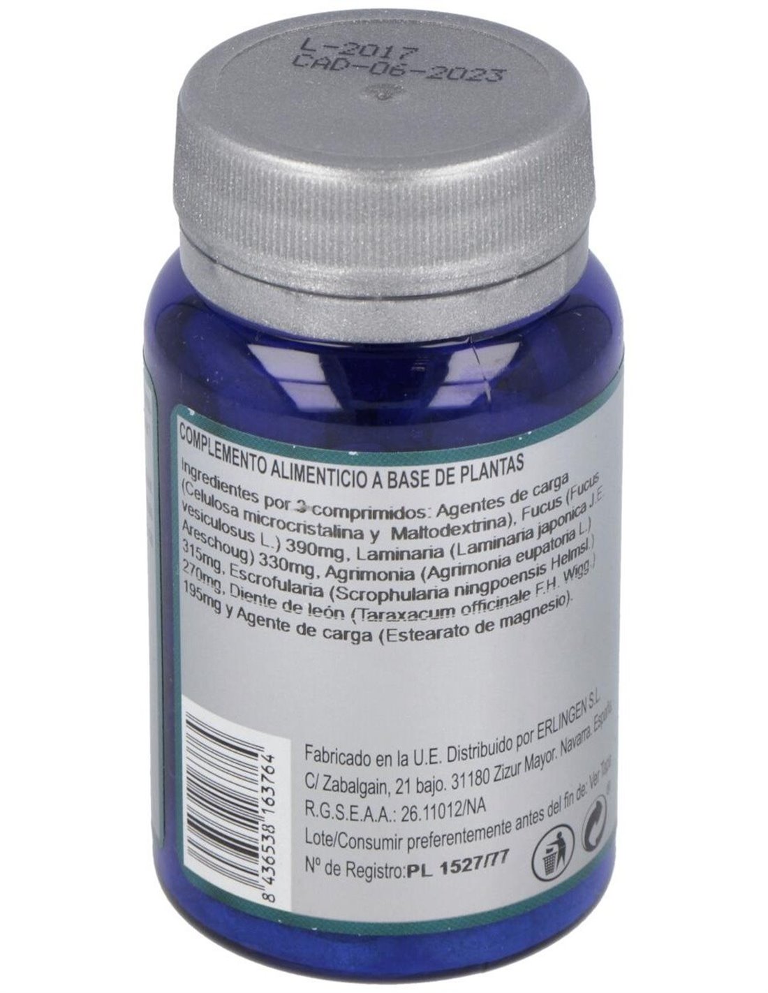 Agentes de carga (Celulosa microcristalina y Maltodextrina), Fucus (Fucus vesiculosus L.) 390 mg, Laminaria (Laminaria japonica J.E. Areschoug) 330 mg, Agrimonia (Agrimonia eupatoria L.) 315 mg, Escrofularia (Scrophularia ningpoensis Helmsl.) 270 mg, Diente de león (Taraxacum officinale F.H. Wigg.) 195 mg y Agente de carga (Estearato de magnesio).