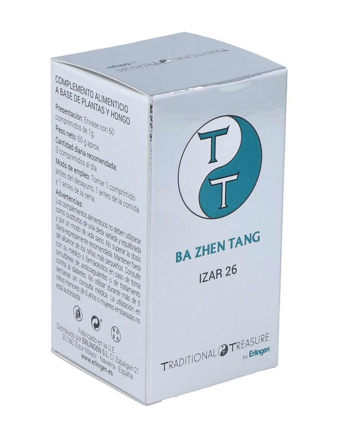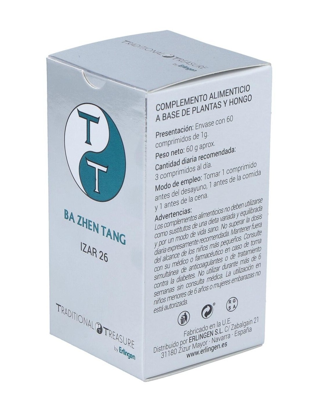 Remania (Rehmannia glutinosa (Gaertn.) DC.), Atractilodes (Atractylodes macrocephala Koidz.), Poria (Poria cocos Wolf), Angelica (Angelica sinensis (Oliv.) Diels), Ginseng (Panax ginseng C.) A. Mey), Peonía (Paeonia lactiflora Pall.), Ligusticum (Franch. Ligusticum wallichii.), Regaliz (Glycyrrhiza glabra L.), Jengibre (Zingiber officinale Rosc), Jojoba (Ziziphus jujuba Mill.).