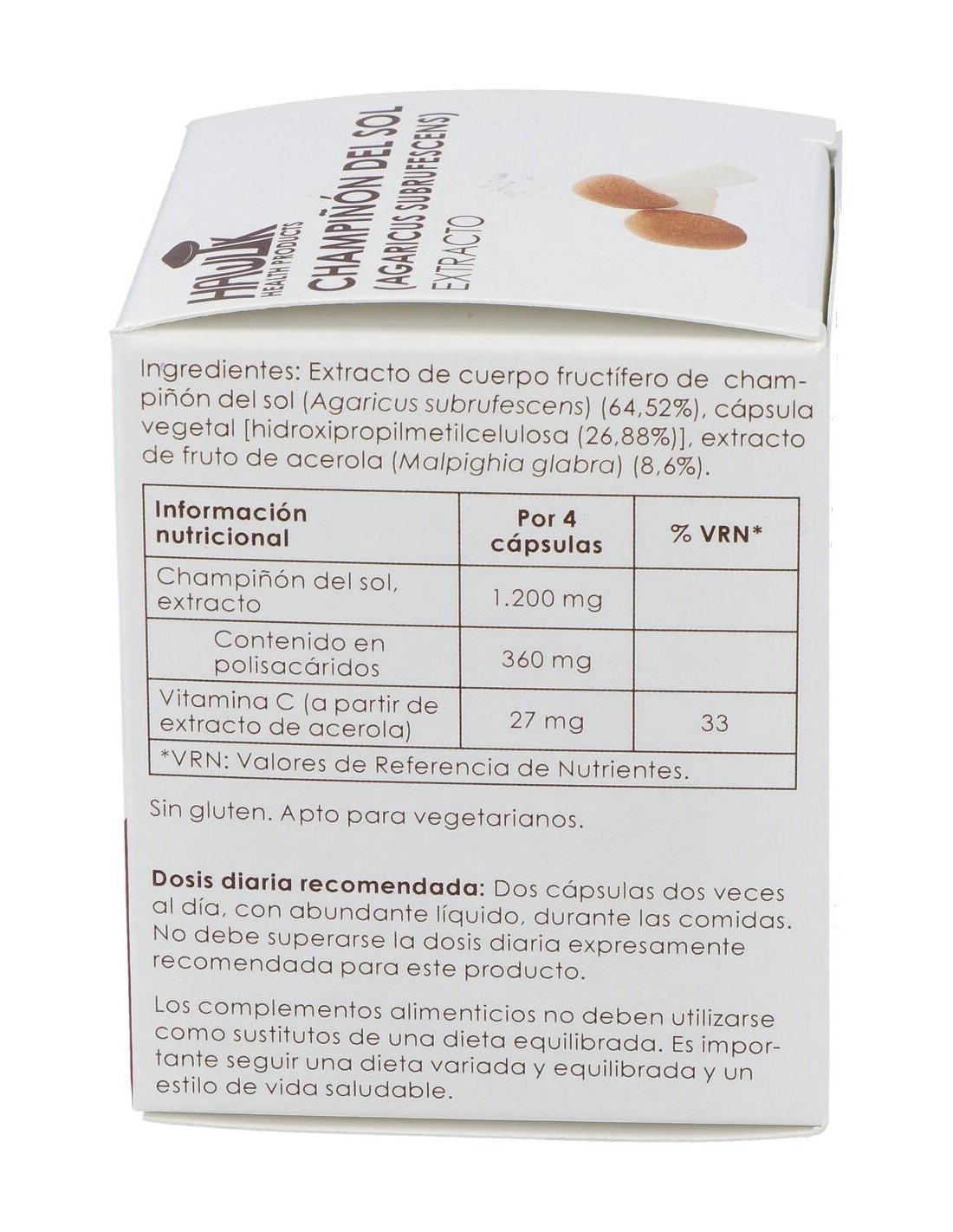 Champiñón Del Sol (Agaricus Subrufescens). Extracto Puro. Bio 60 Vcáps de Hawlik