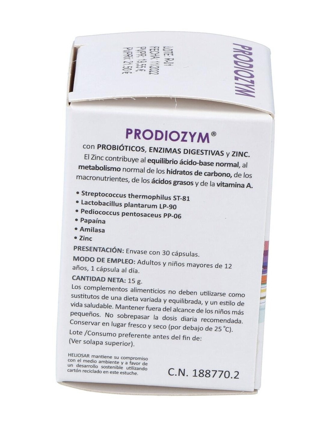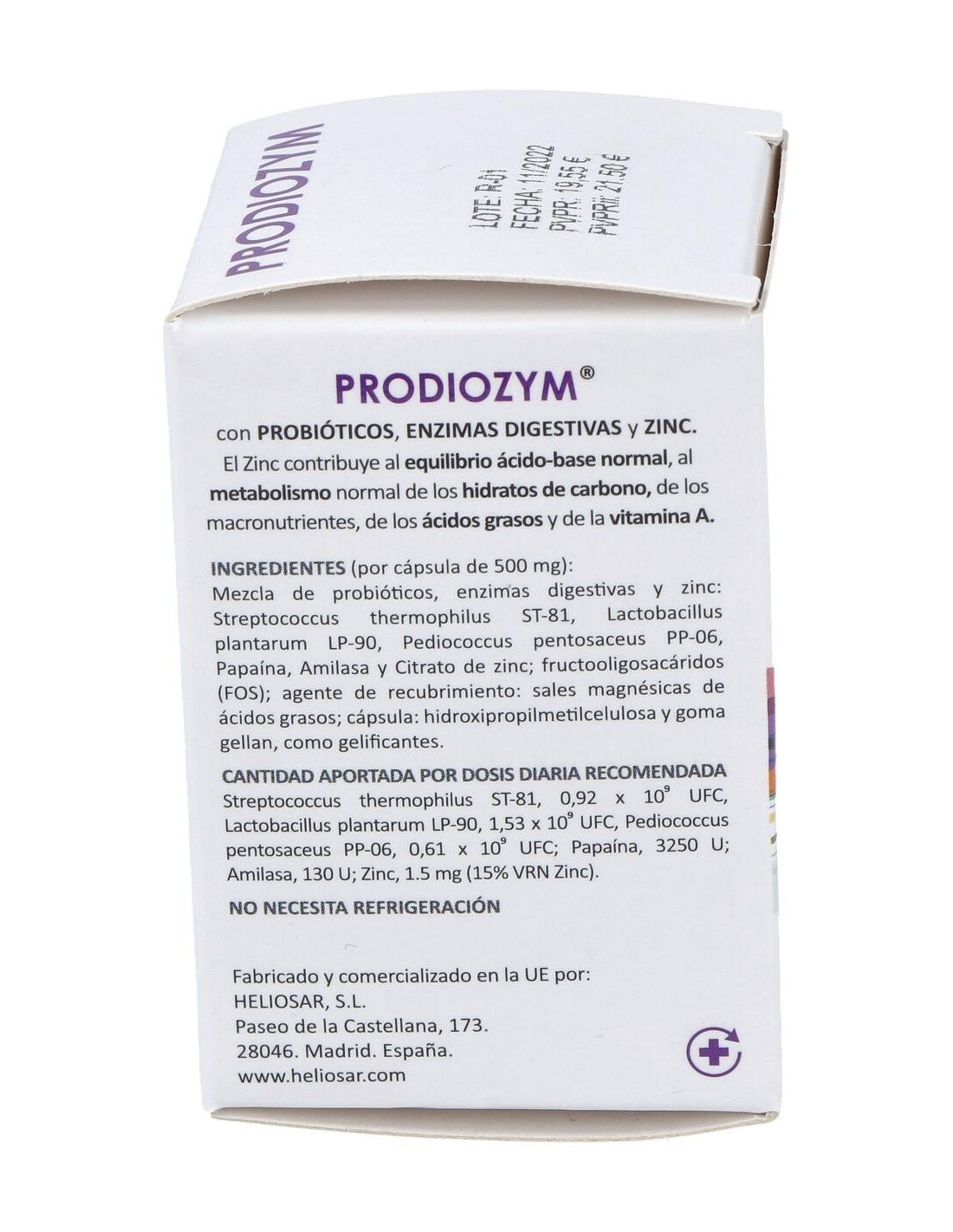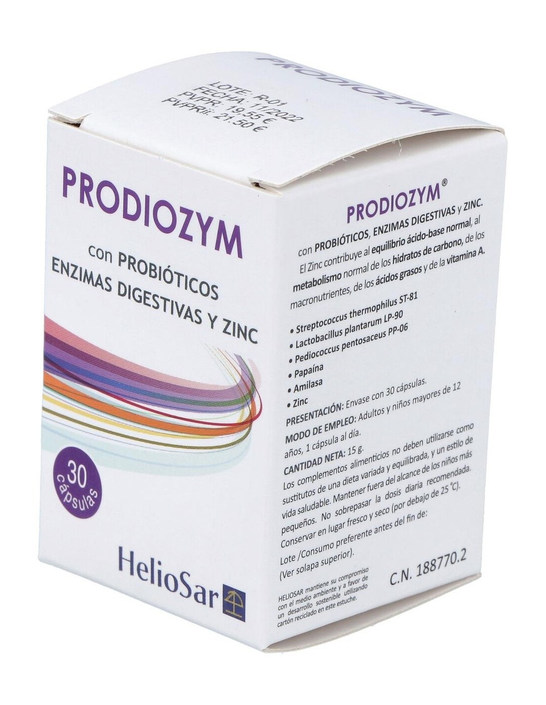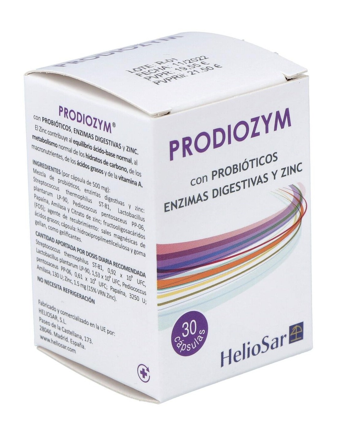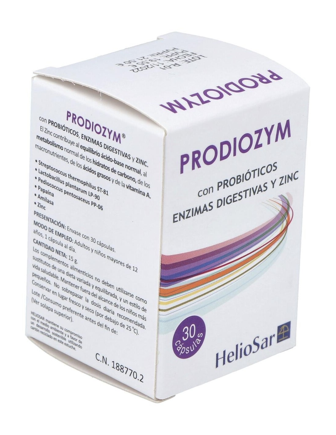 Complemento alimenticio a base de probióticos, enzimas digestivas y zinc. Diseñado para contribuir en el equilibrio normal del metabolismo y mejorar la absorción de nutrientes en el cuerpo. A base de enzimas digestivas encargadas del metabolismo de las proteínas. Contiene zinc que ayuda a mejorar la capacidad muscular y aliviar la fatiga física. Sin gluten ni lactosa, es apto para diabéticos. Ayuda a proteger la flora intestinal y regular la acidez. Favorece el metabolismo normal de hidratos de carbono, macronutrientes, ácidos grasos y vitamina A. Apto para casos de peristaltismo.