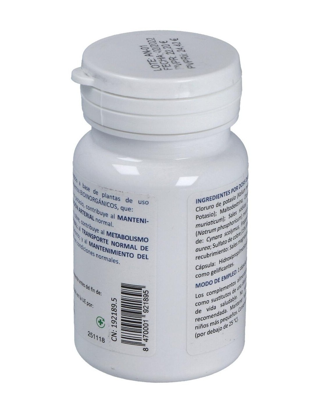 Cloruro de potasio (Kalium muriaticum) (15% VRN de Potasio): Maltodextrina: Cloruro de sodio (Natrum muriaticum): Sales sódicas de ácido ortofosfórico (Natrum phosphoricum): mezcla de extractos vegetales de: Cynara scolymus, Fragaria vesca, Solidago virga aurea: Sulfato de cobre (15% VRN de Cobre): Agente de recubrimiento: Sales magnésicas de ácidos grasos.