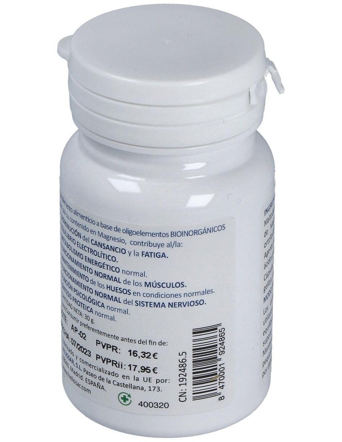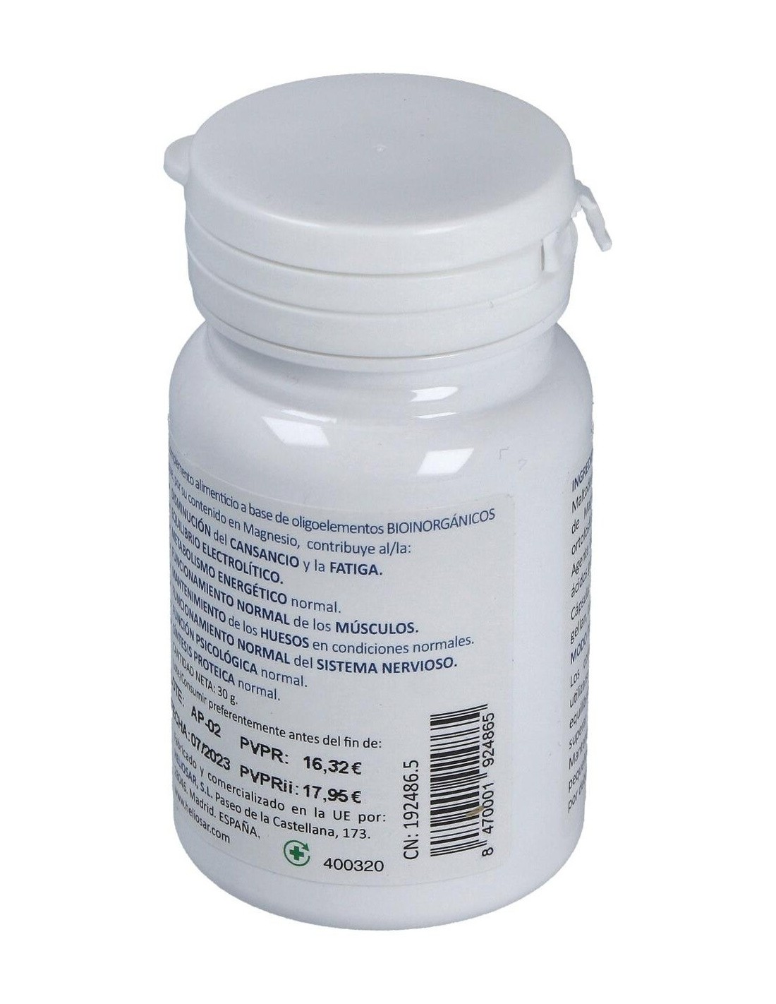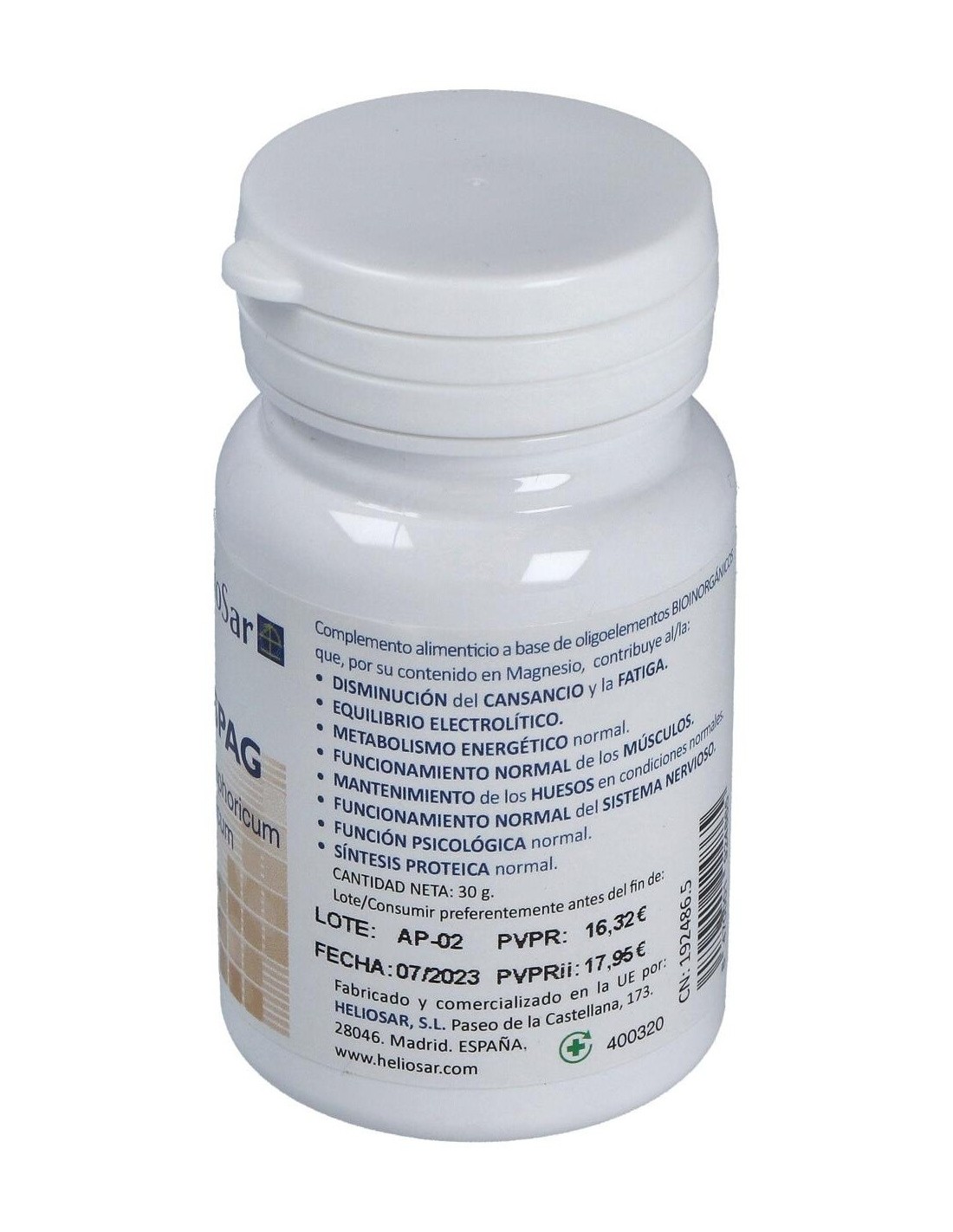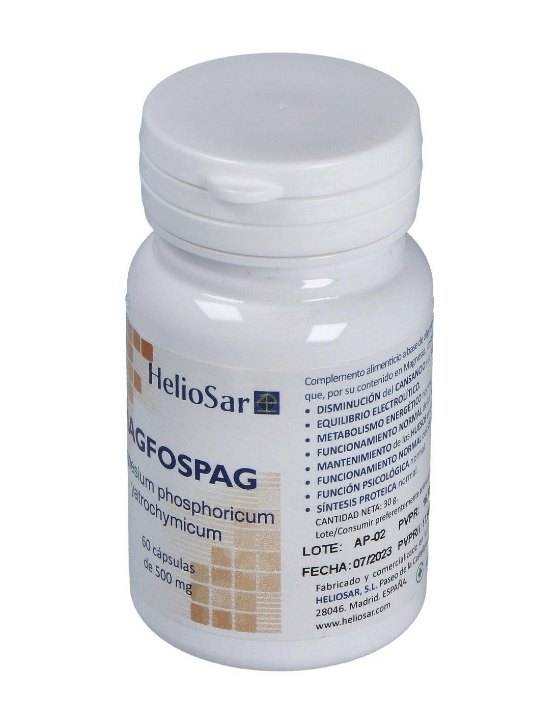 Complemento alimenticio que ayuda a disminuir la presión arterial, contribuye al mantenimiento muscular, vitalidad y la reducción del cansancio y la fatiga. Permite la relajación muscular evitando los calambres y tensión.