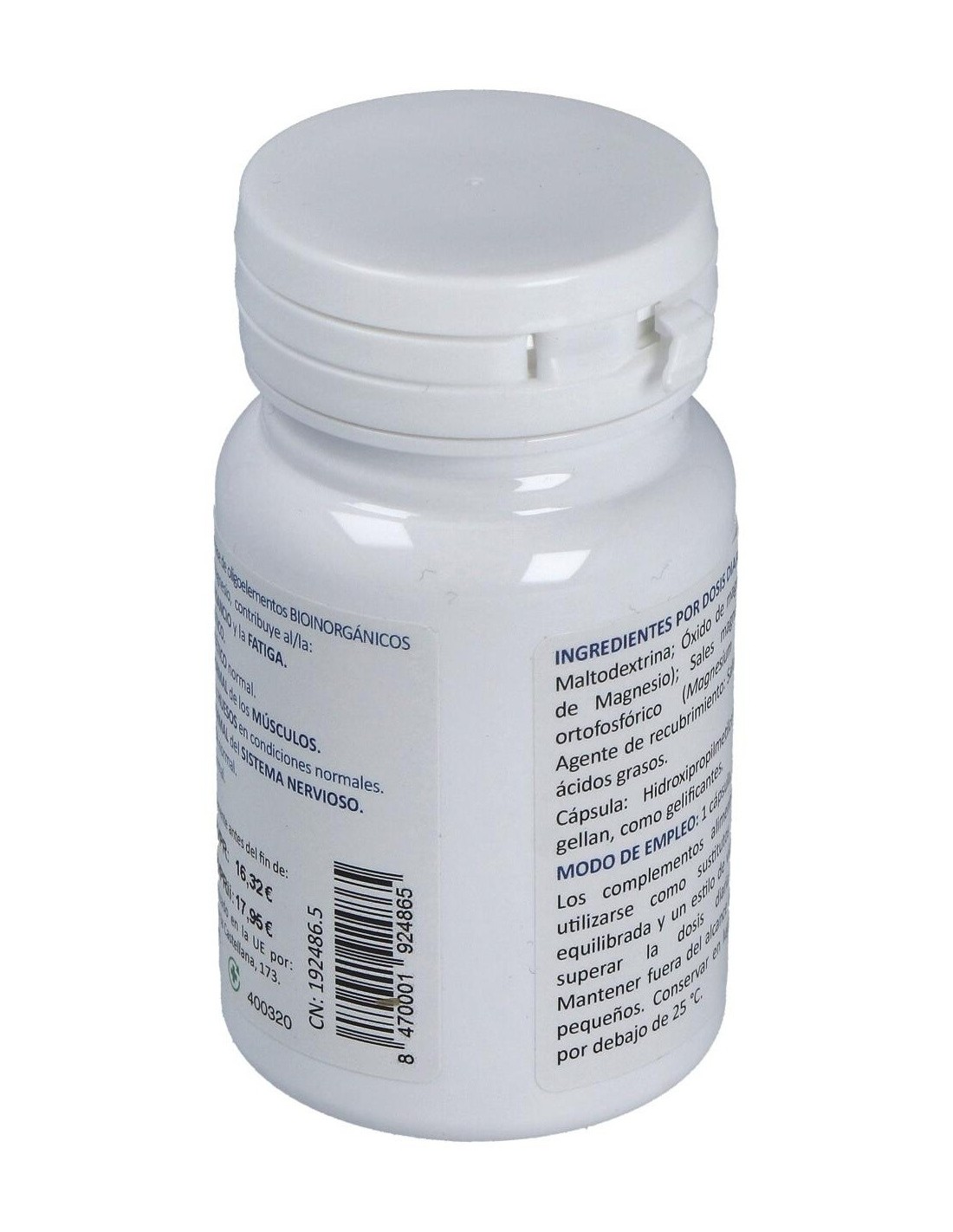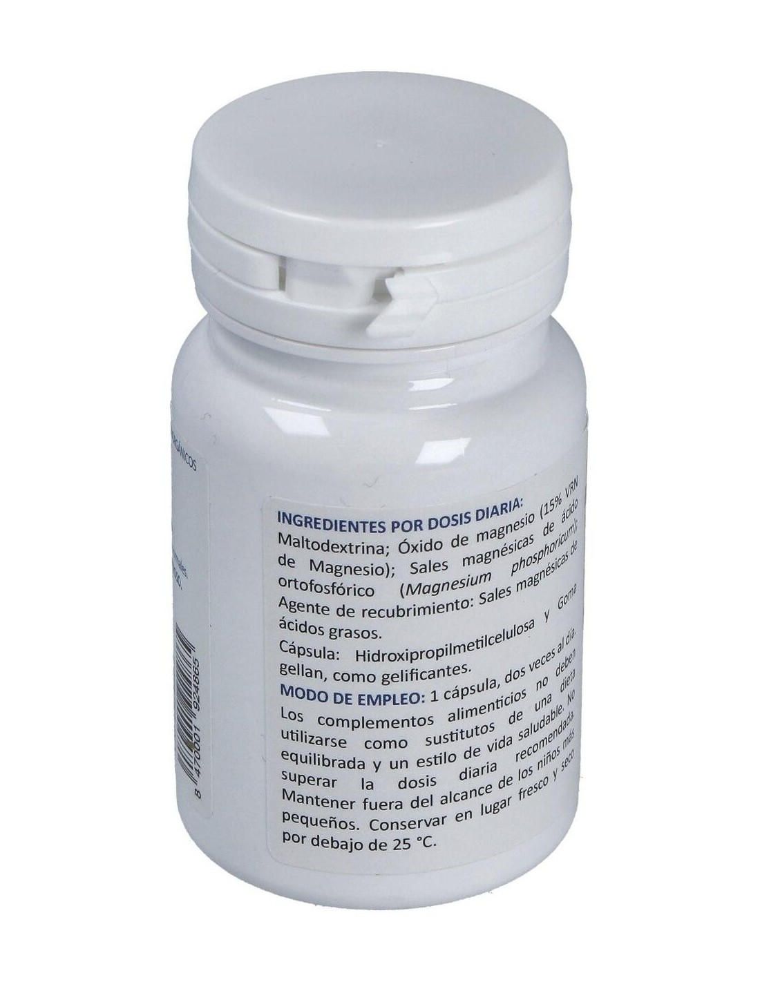 Maltodextrina, Sales magnésicas de ácido ortofosfórico, Sales magnésicas de ácidos grasos (E470b), Hidroxipropimetilcelulosa (E464) y Goma gellan (E418).