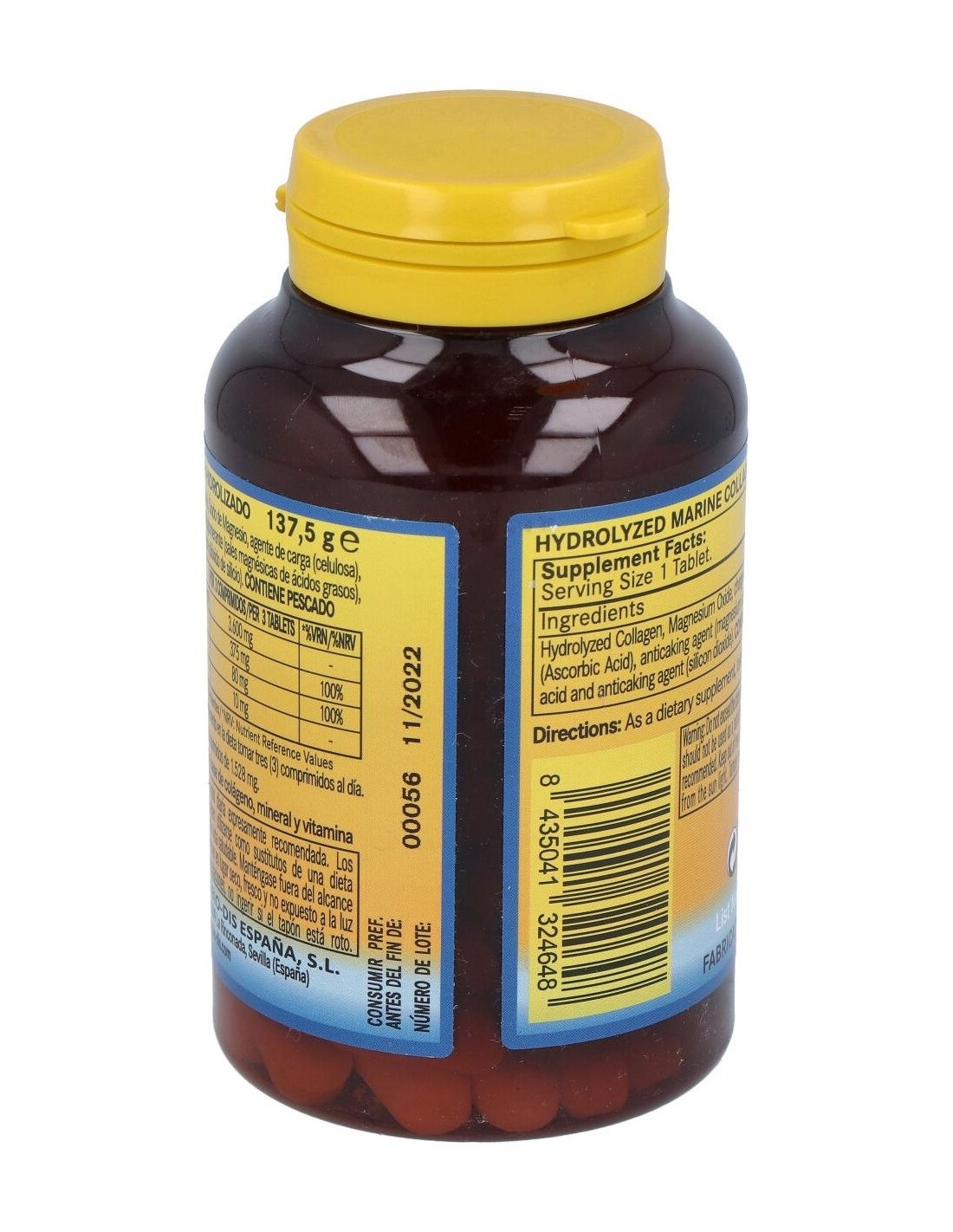 Colágeno Hidrolizado Marino, Óxido de Magnesio, Vitamina C (Ácido L-ascórbico) y Ácido Hialurónico.