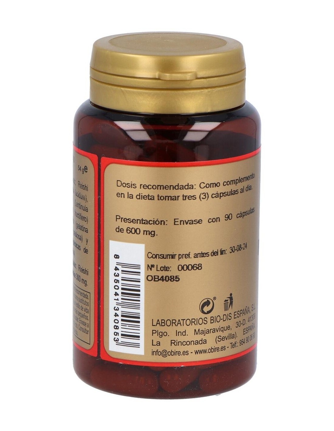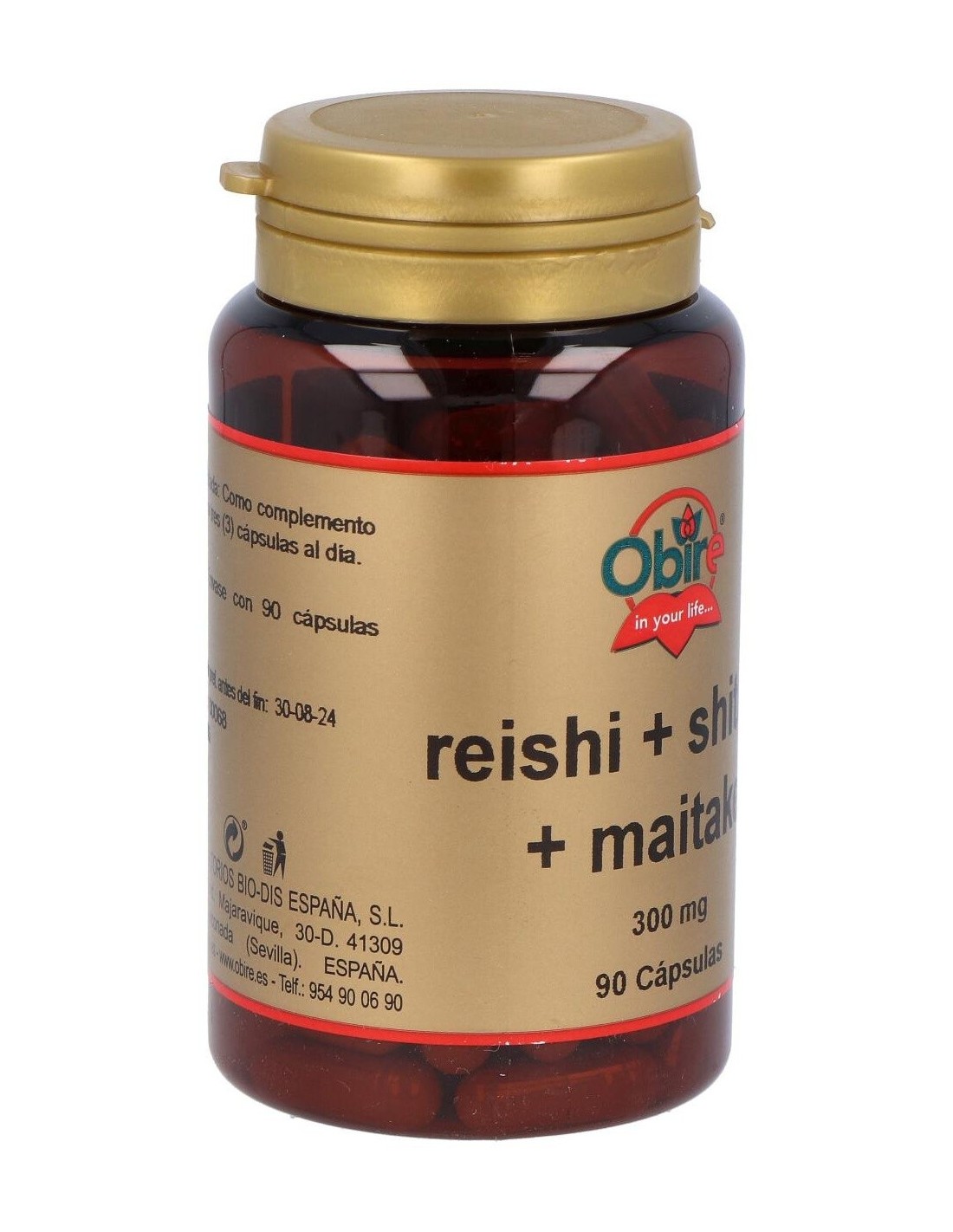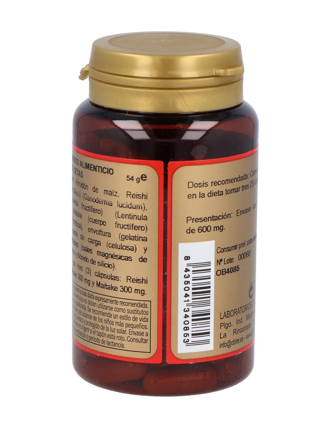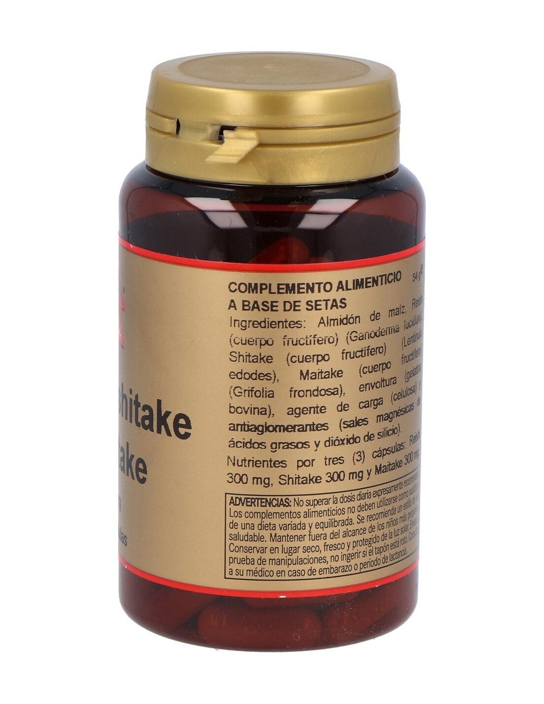 Reishi (Ganoderma lucidum), Shitake micelio (Lentinus edodes), Maitake (Griffolia frondosa), Cápsula de gelatina dura.