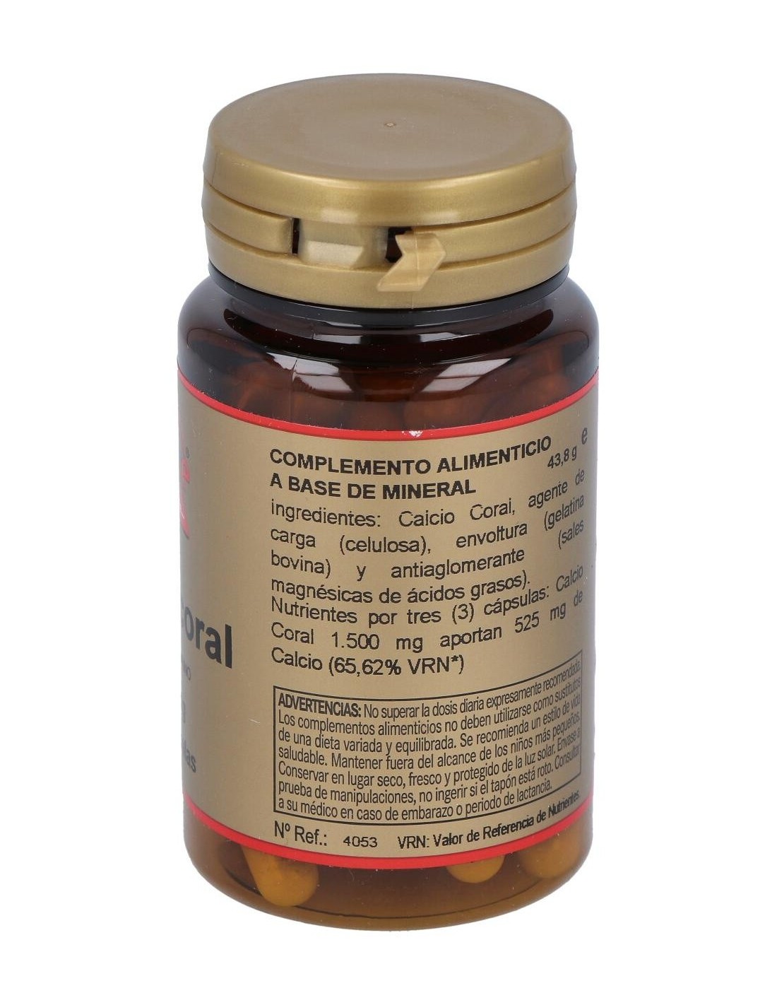 Complemento alimenticio en forma de cápsula, elaborado a base calcio coralino, una sal de calcio derivada de los arrecifes de coral fosilizados, que aporta todos los minerales necesarios para el organismo. Rico en calcio fácilmente absorbible, contribuye al mantenimiento normal de huesos, dientes y músculos.