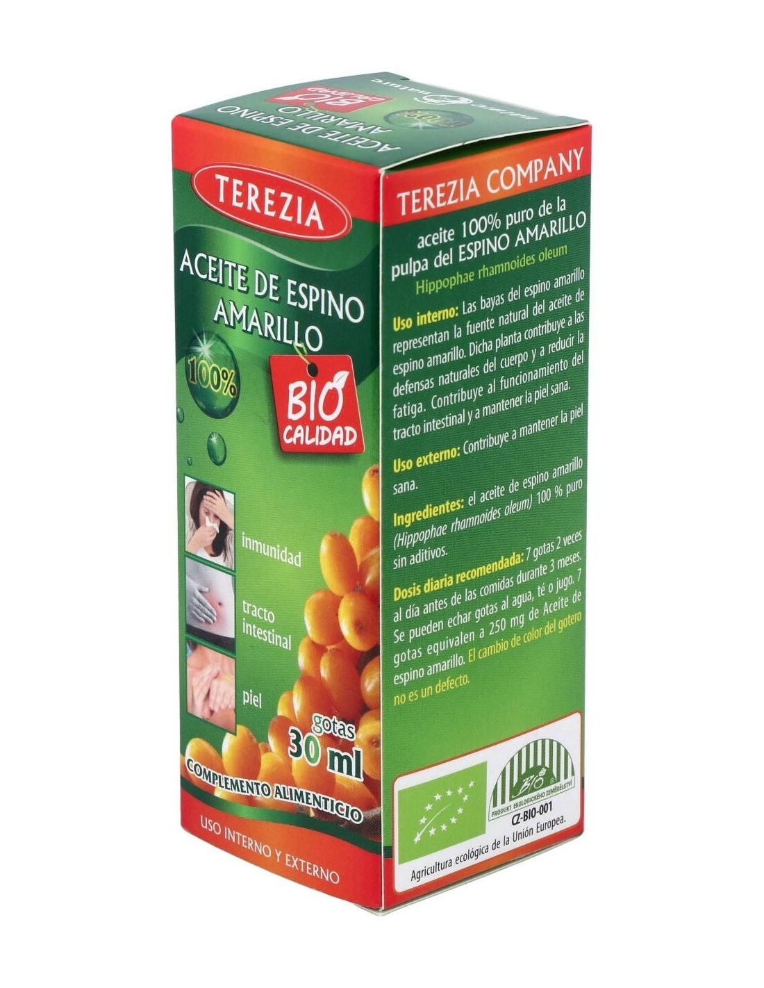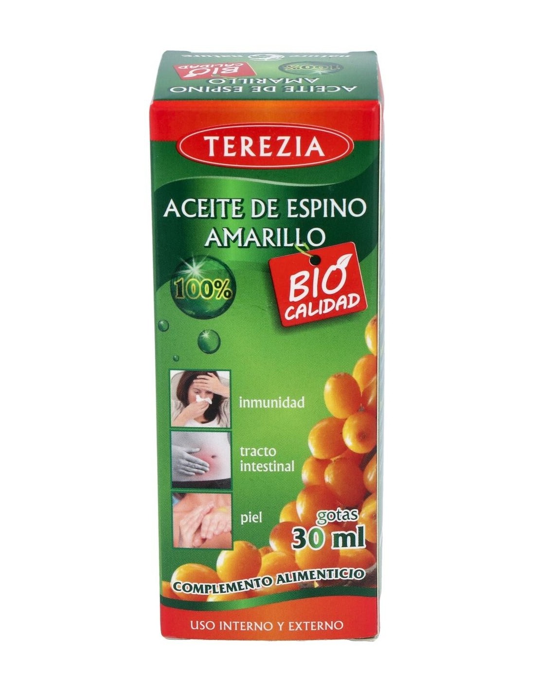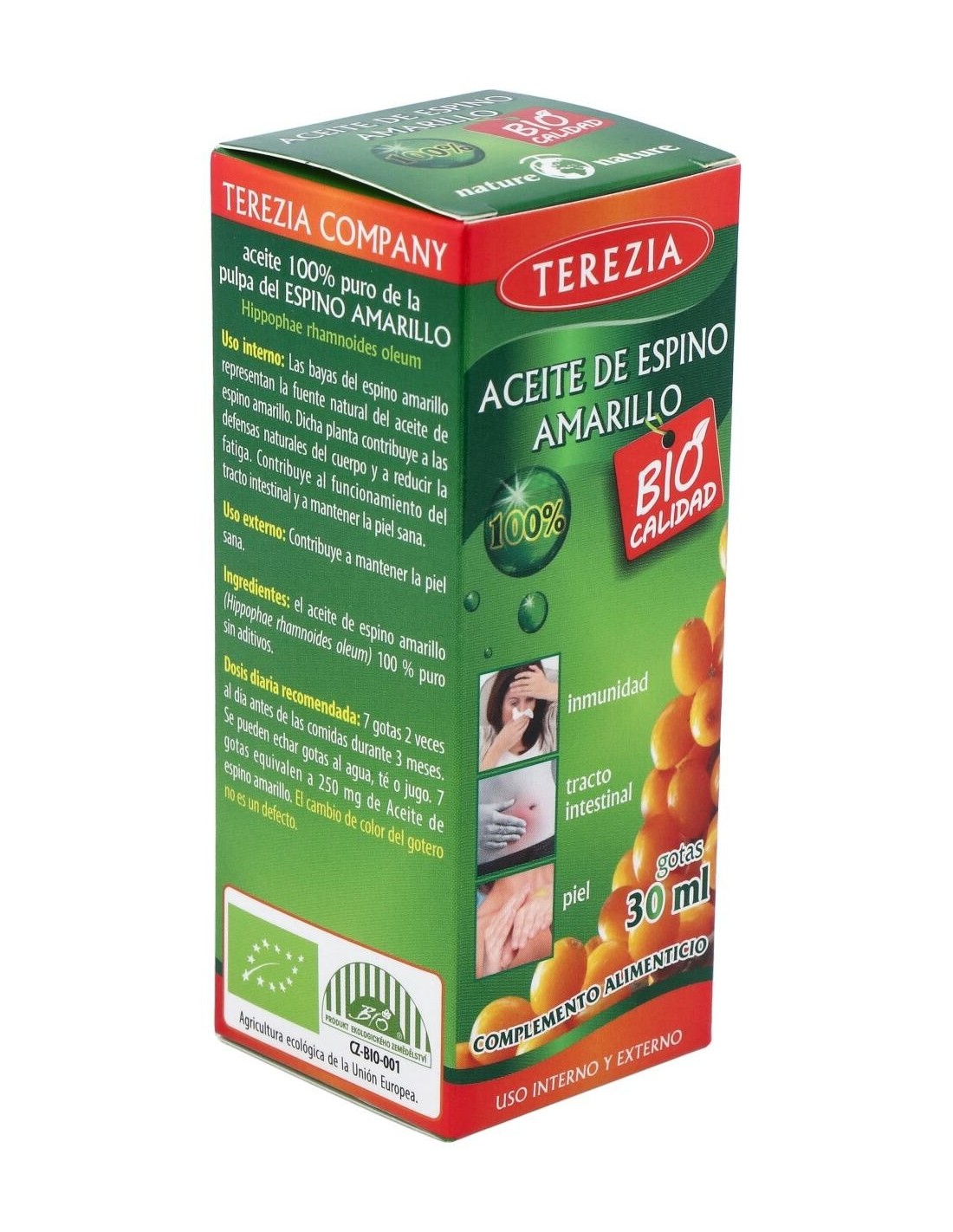 El aceite de espino amarillo contribuye al normal funcionamiento del sistema inmune, a reducir la fatiga, al funcionamiento normal del tracto intestinal, y a mantener la piel y mucosas en condiciones normales. El aceite de espino amarillo contribuye al normal funcionamiento del sistema inmune, a reducir la fatiga, al funcionamiento normal del tracto intestinal, y a mantener la piel y mucosas en condiciones normales.