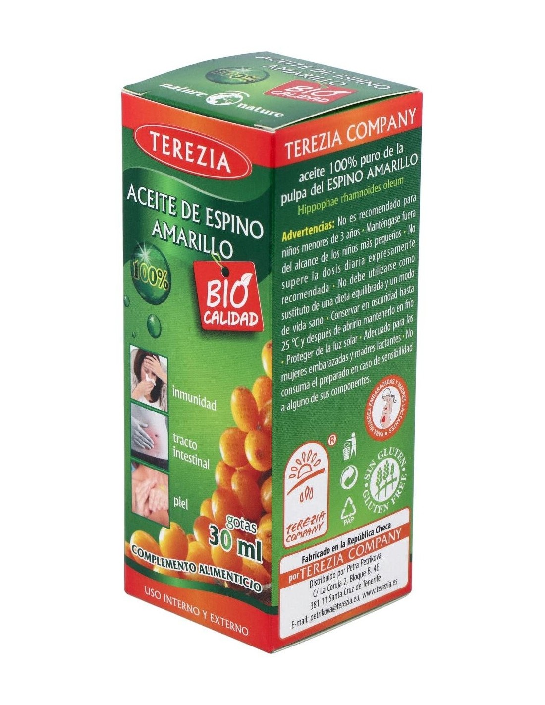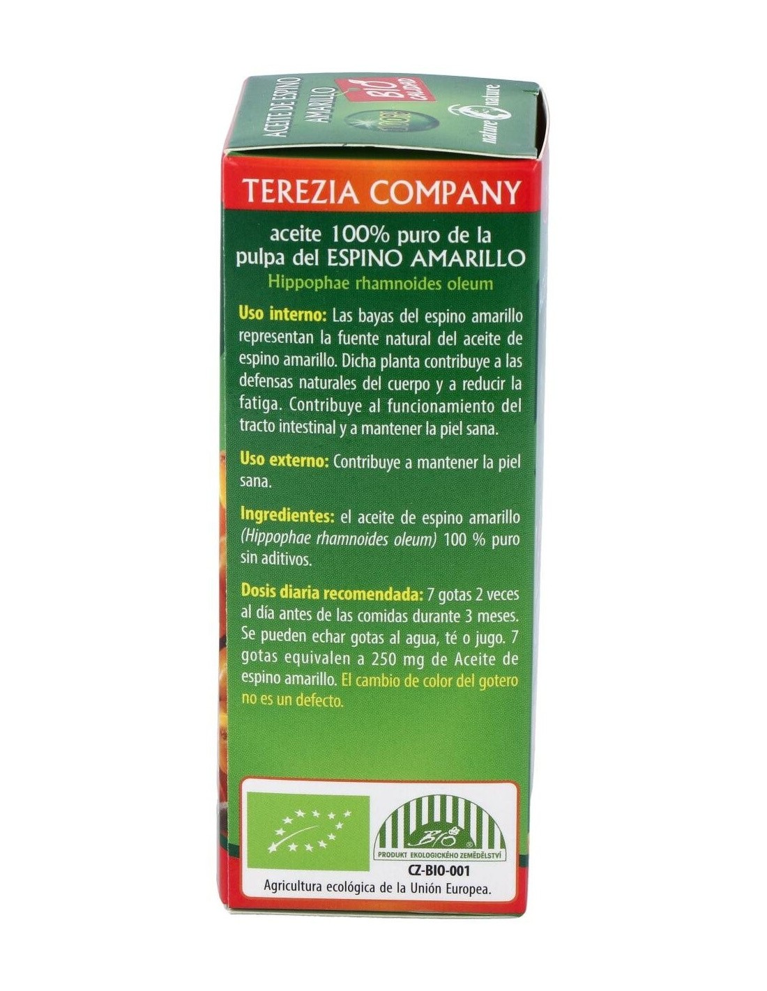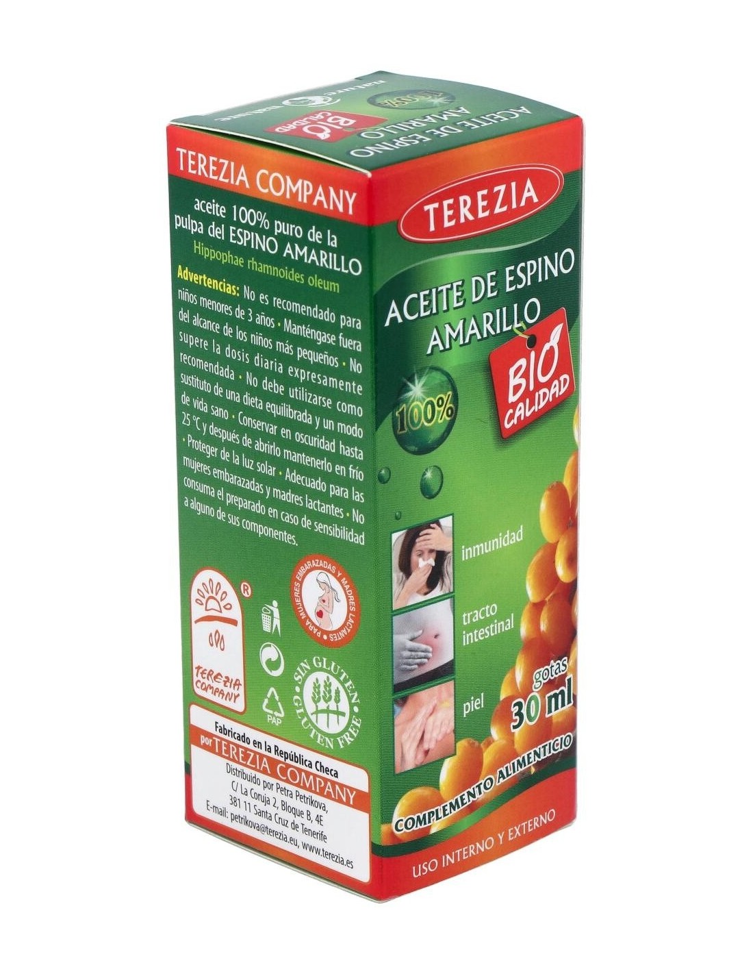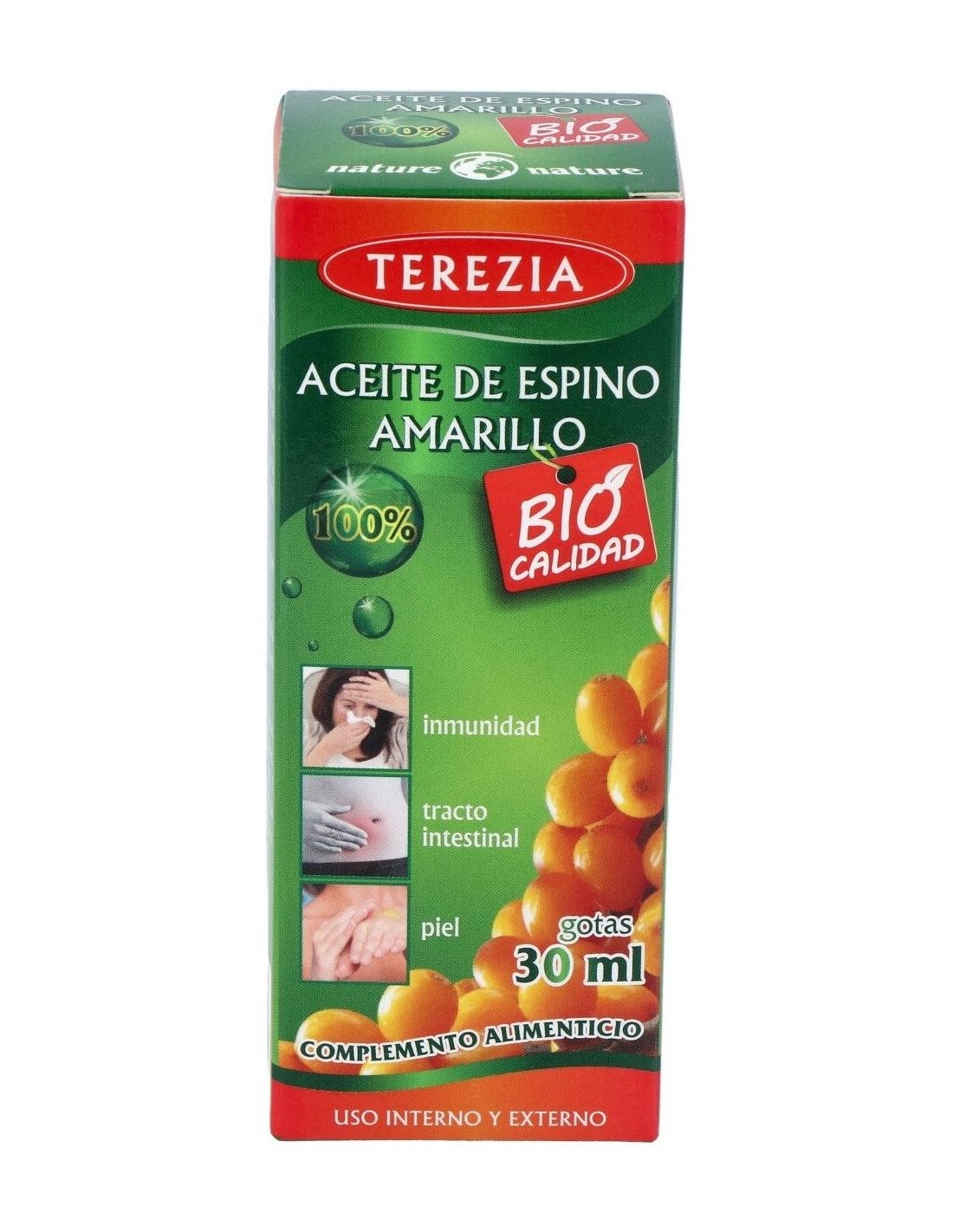 El aceite de espino amarillo contribuye al normal funcionamiento del sistema inmune, a reducir la fatiga, al funcionamiento normal del tracto intestinal, y a mantener la piel y mucosas en condiciones normales. El aceite de espino amarillo contribuye al normal funcionamiento del sistema inmune, a reducir la fatiga, al funcionamiento normal del tracto intestinal, y a mantener la piel y mucosas en condiciones normales.