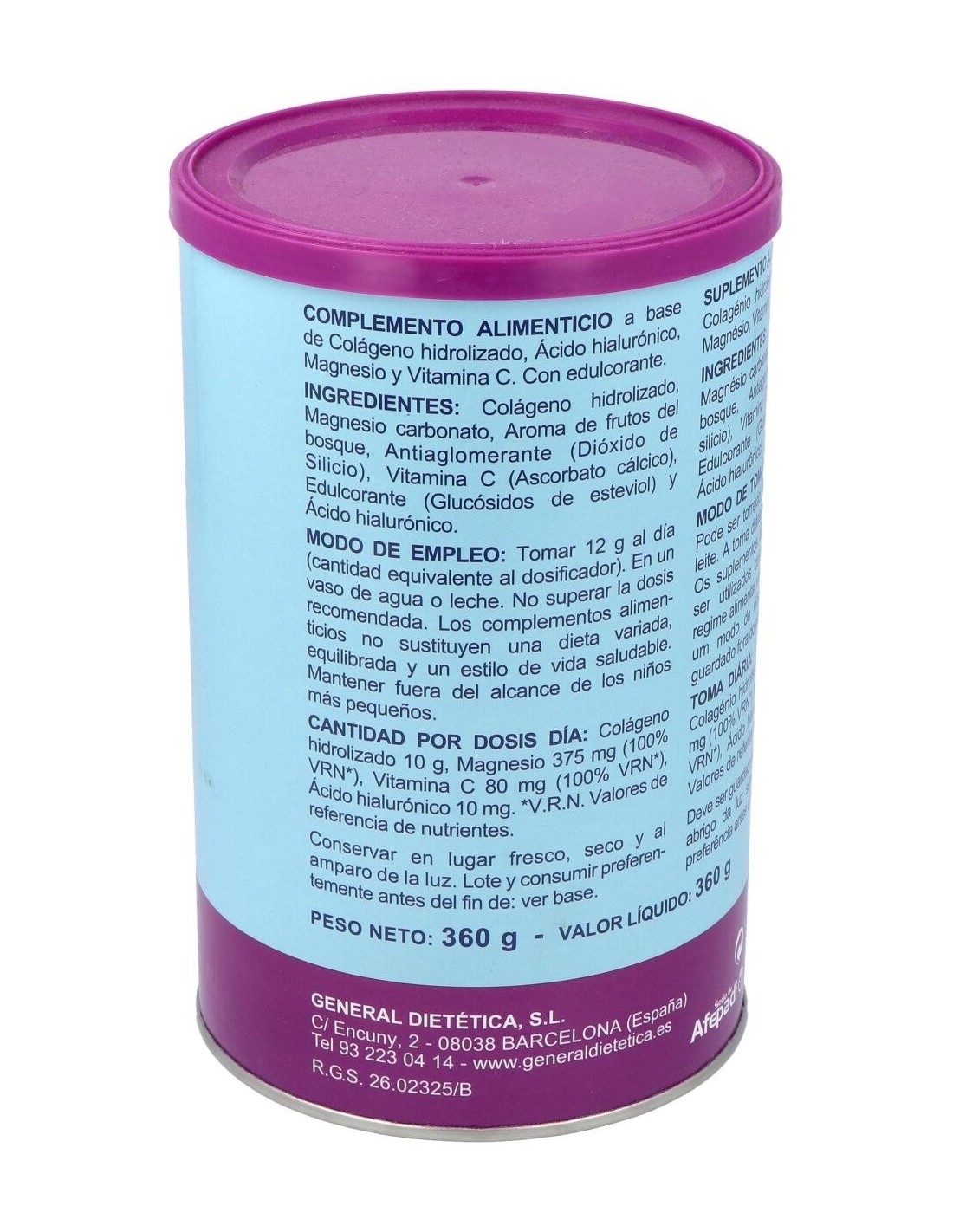 COLÁGENO HIDROLIZADO 10 G, MAGNESIO 375 MG, VITAMINA C 80 MG Y ÁCIDO HIALURÓNICO 10 MG.