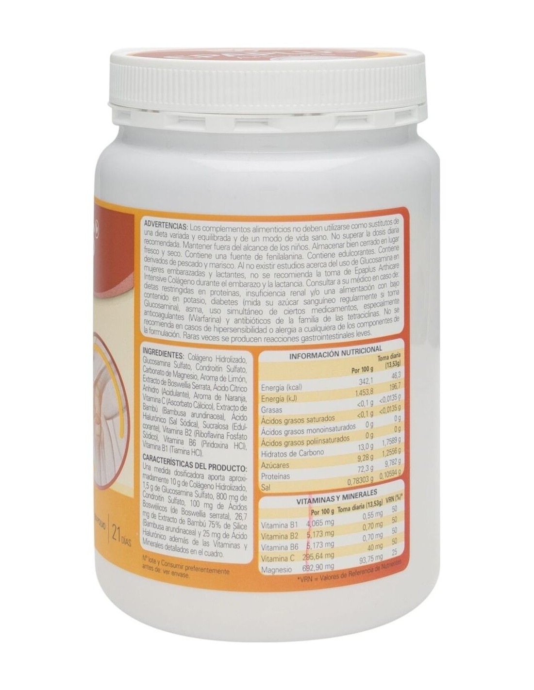 Epaplus Arthicare Colágeno Intensive 284g: es un complemento alimenticio con Colágeno hidrolizado bioasimilable, Glucosamina, Condroitina, Ácido Hialurónico, Silicio, Boswellia y Vitaminas C, B1, B2 y B6.