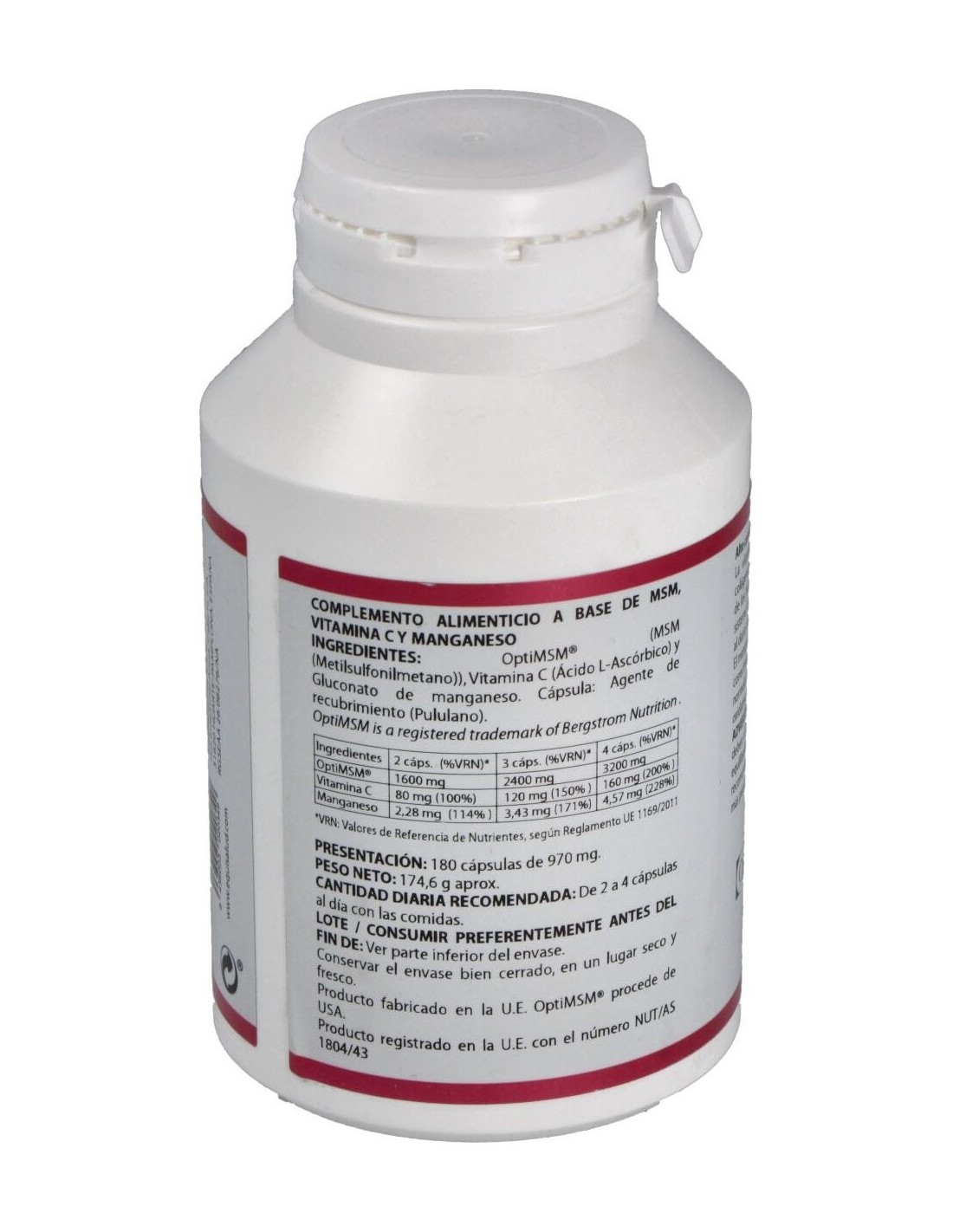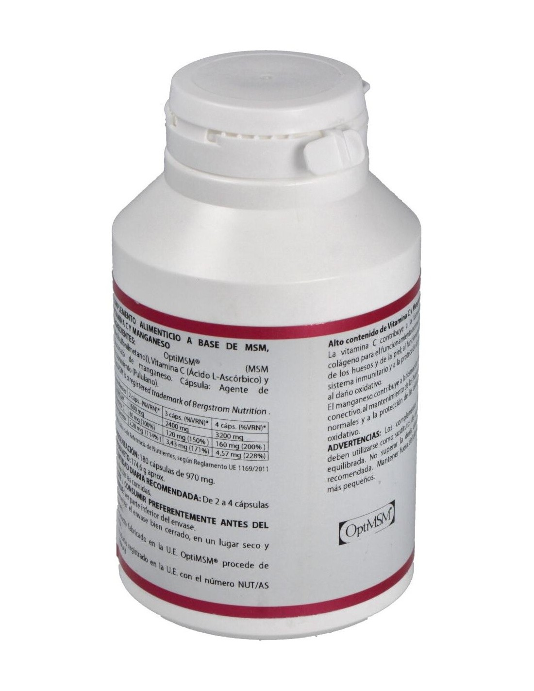 Azufre orgánico (Metil-sulfonil-metano), Vitamina C, Gluconato de Manganeso. Envoltura de polisacárido de origen vegetal (pululano).