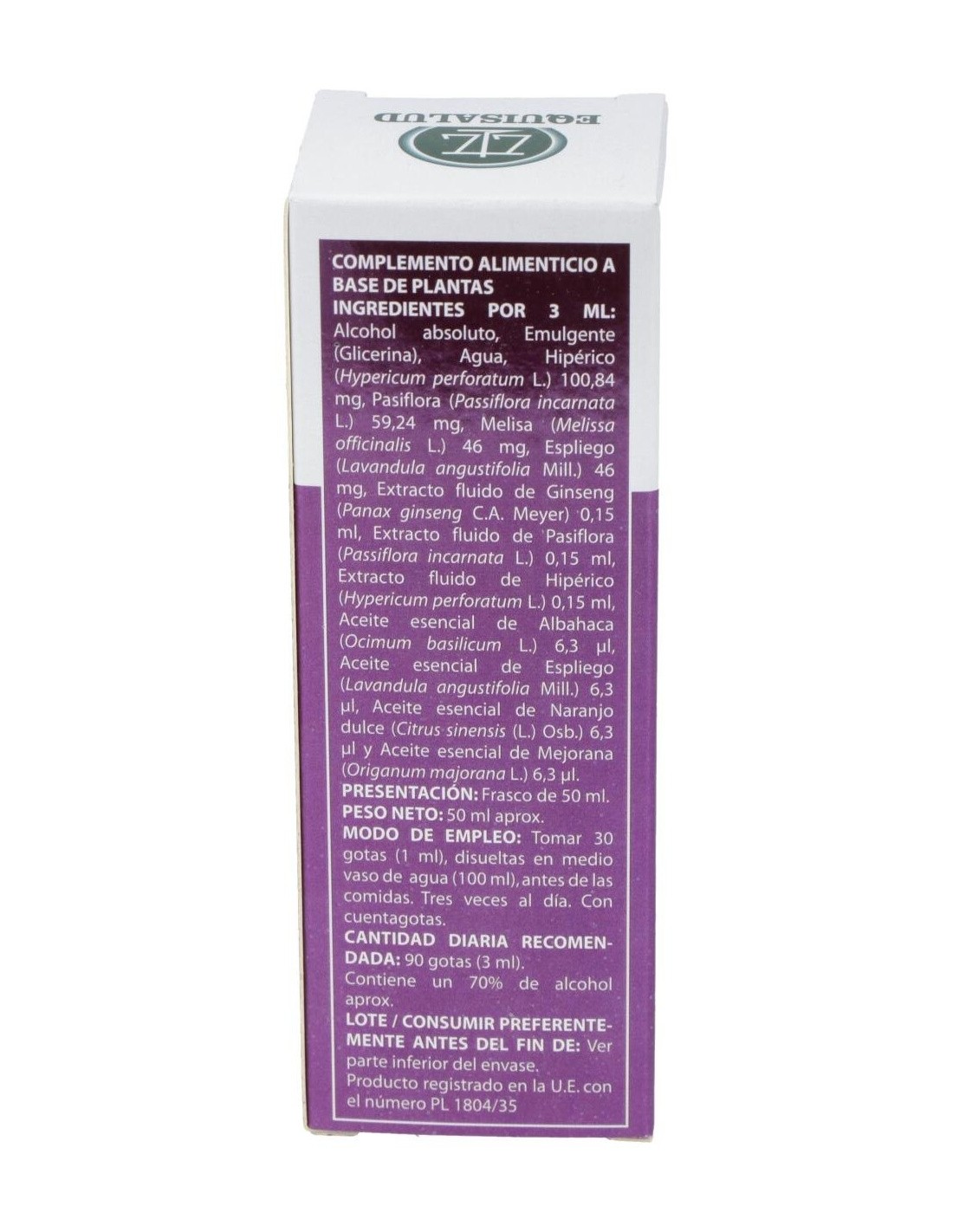 Pasiflora, Hipérico, Espliego, Melisa, Ginseng, Naranja dulce, Albahaca, Mejorana.