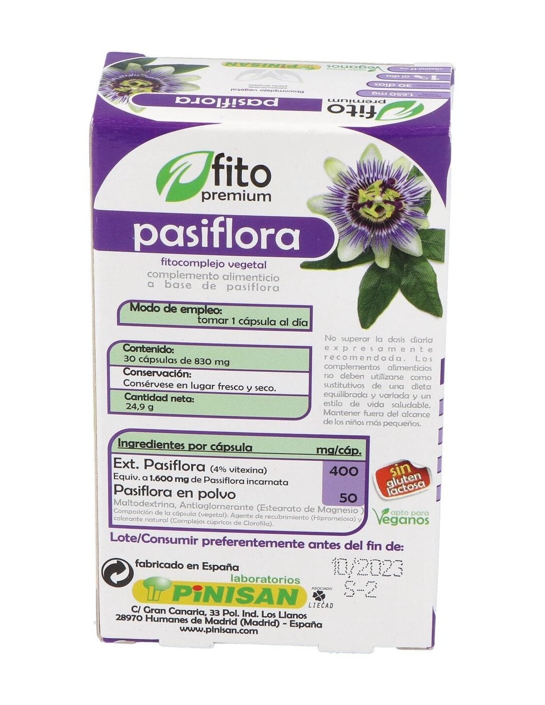 Extracto pasiflora (4% vitexina)........400 mg (equivalente a 1600 mg de Passiflora incarnata)