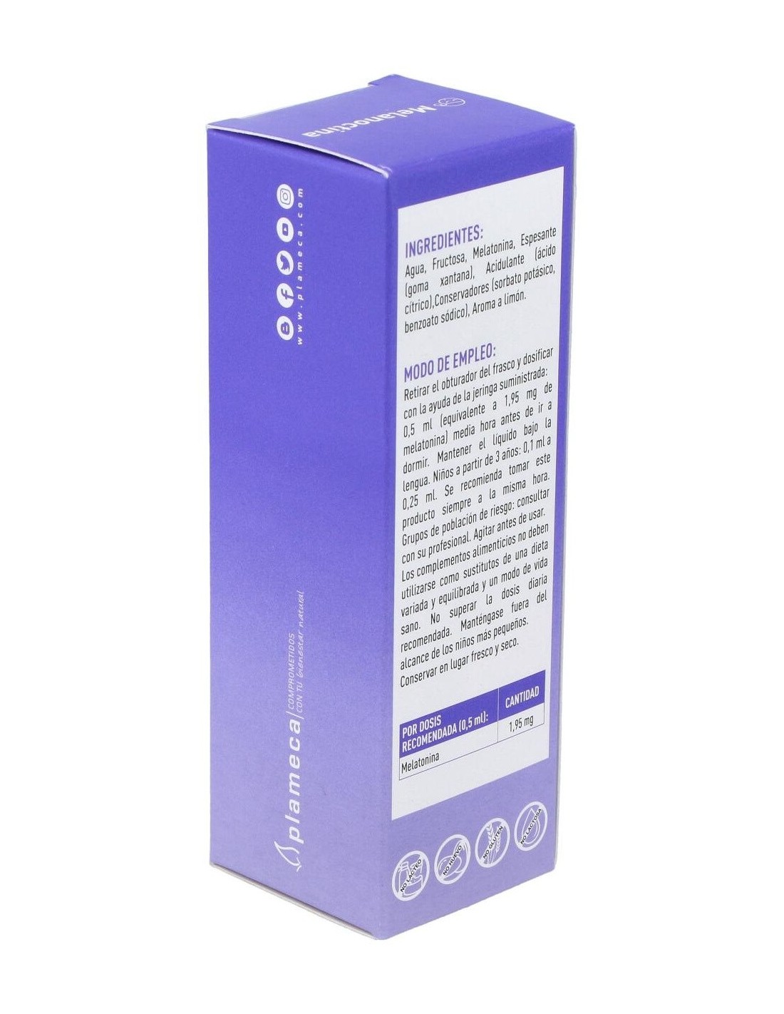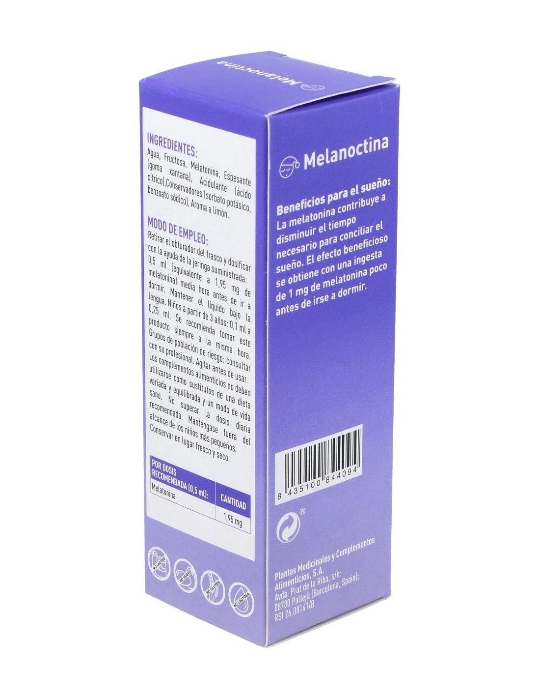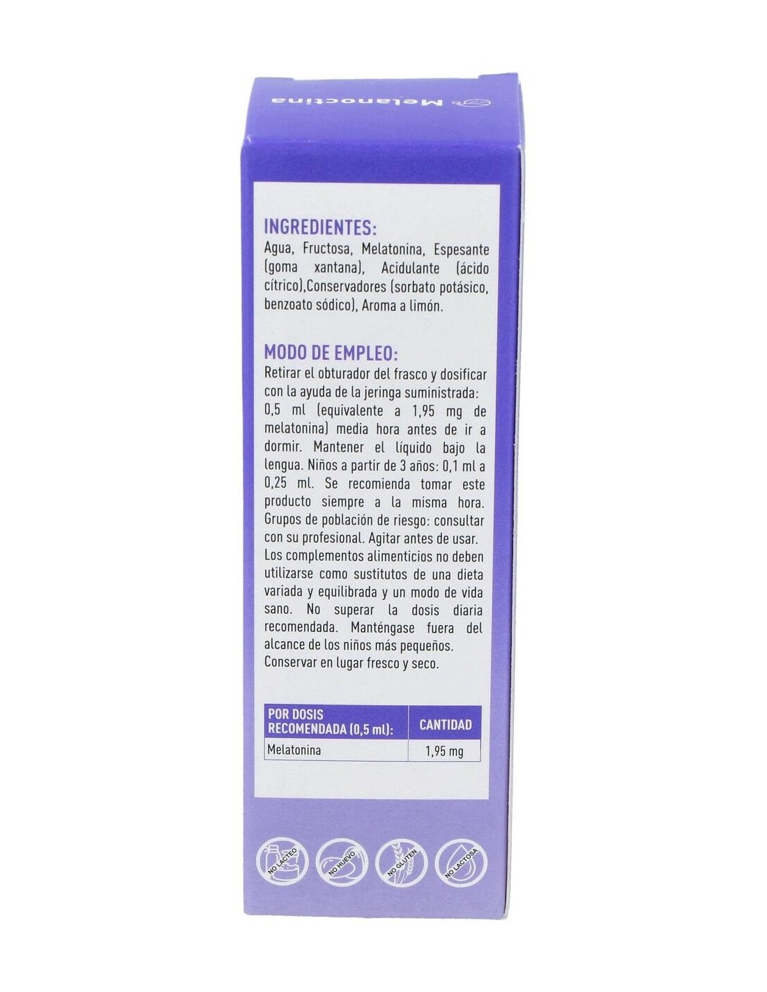 Agua, Fructosa, Melatonina, Espesante (goma xantana), Acidulante (ácido cítrico), Conservadores (sorbato de potasio, benzoato de sodio), Aroma a limón.