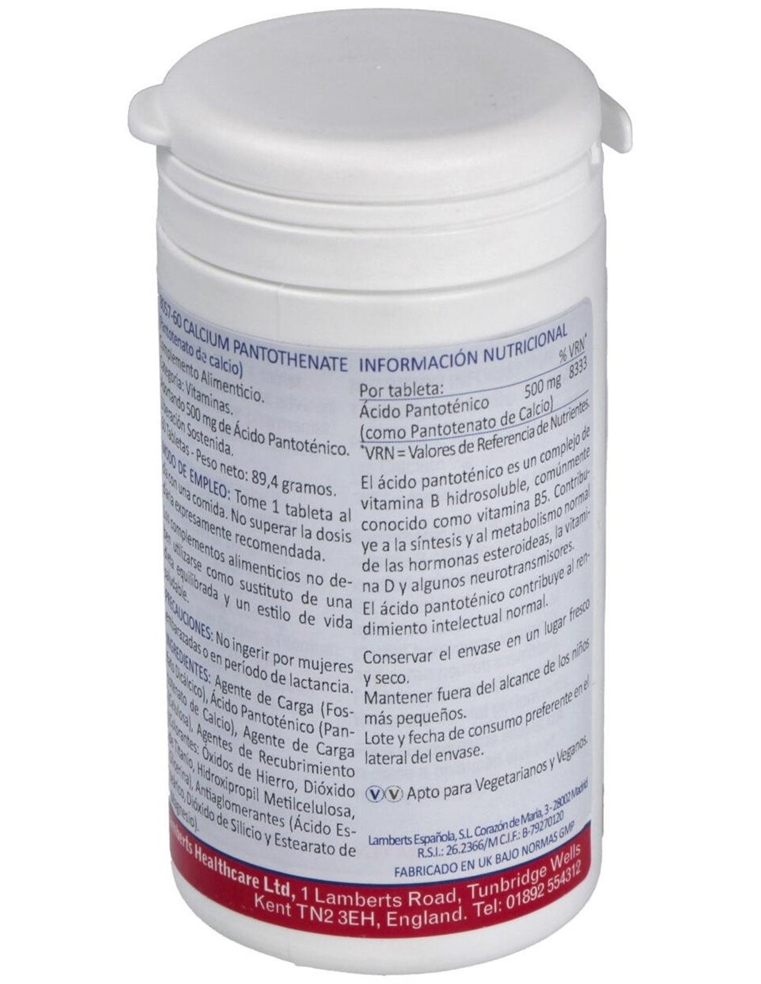 Pantotenato de Calcio 500 mg Lib. Sostenida de Lamberts