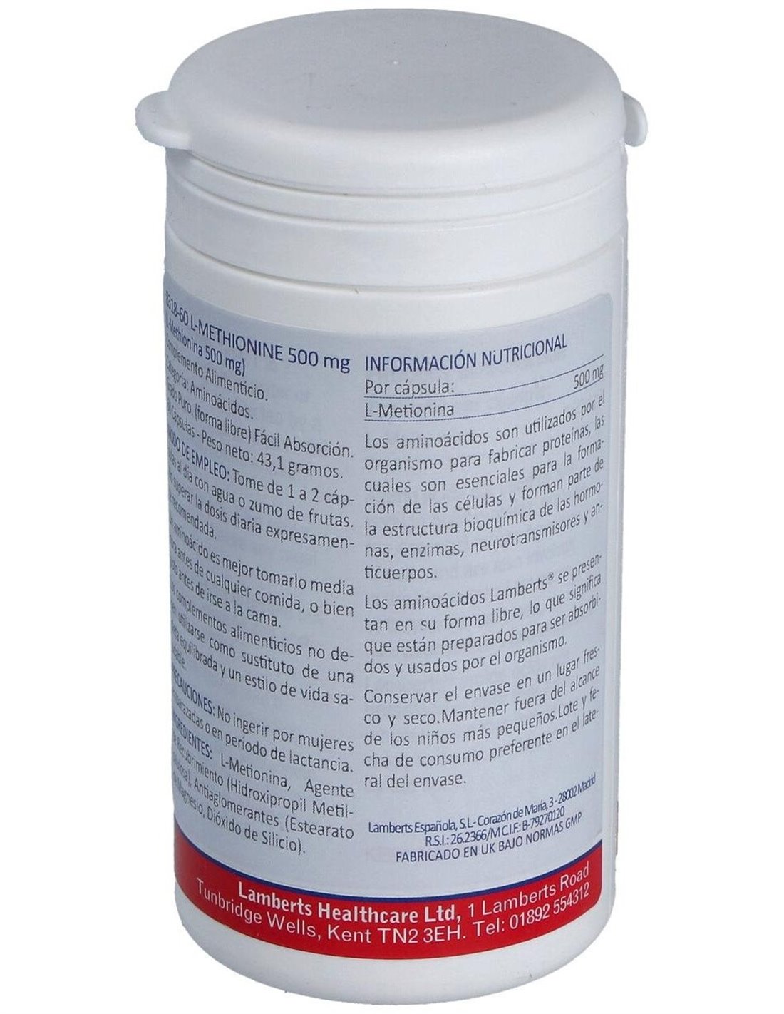 La metionina es un aminoácido esencial. Es necesaria en la formación del colágeno y en la síntesis de las proteínas de las células. En este producto se presenta de forma libre y fácil absorción. Producto apto para veganos y vegetarianos.