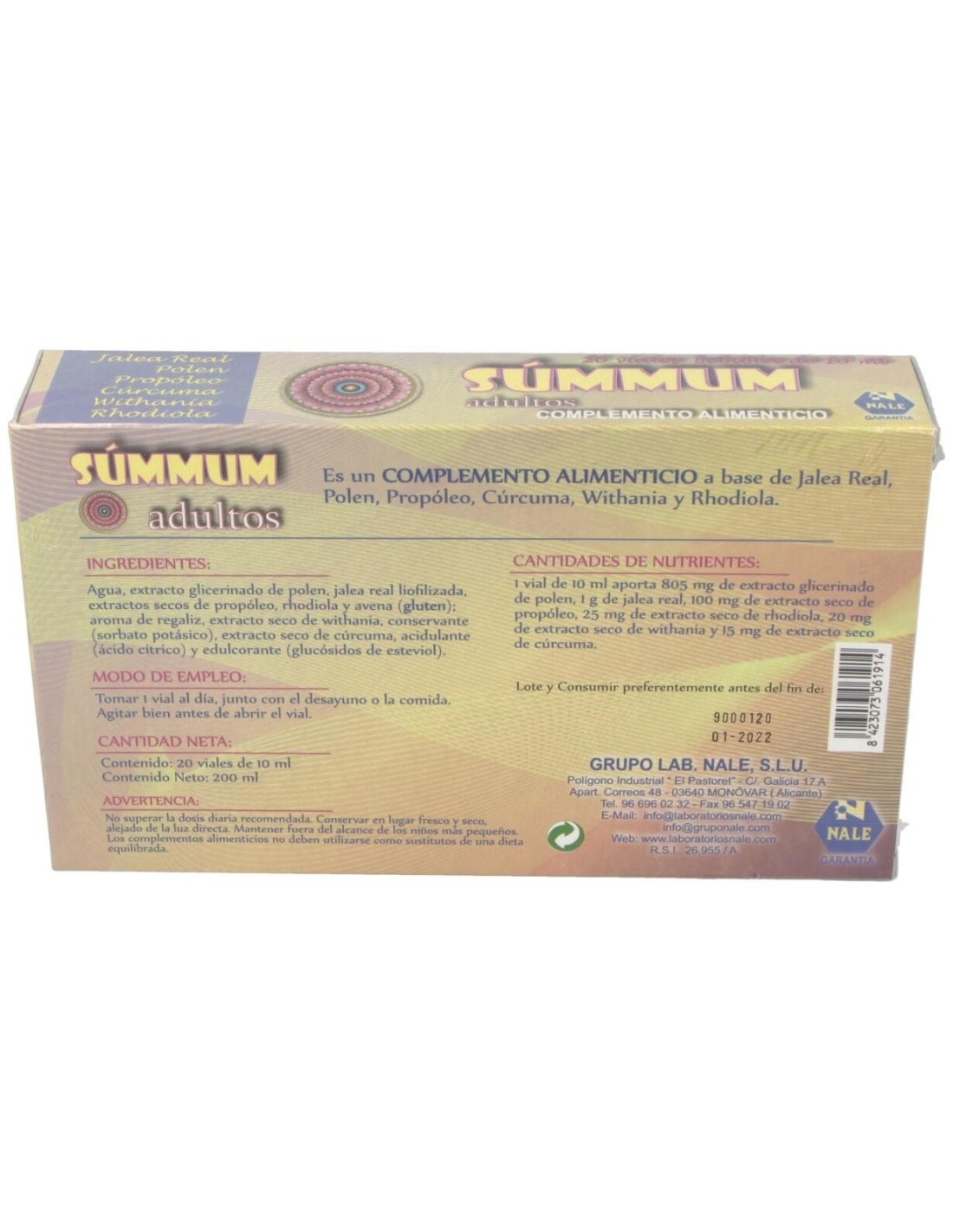 Agua, Extracto Glicerinado De Polen, Jalea Real Liofilizada, Extractos Secos De Propóleo, Rhodiola Y Avena: Aroma De Regaliz, Extracto Seco De Withania, Extracto Seco De Cúrcuma. Edulcorante (Glucósidos De Esteviol).