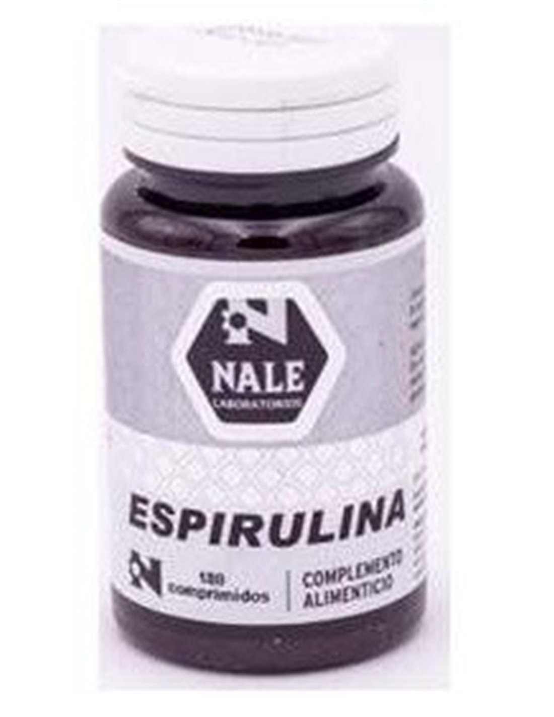 Complemento alimenticio con Espirulina de Nale. La composición presenta extracto de alga espirulina pura (Spirulina maxima) con excipientes de estearato de magnesio (antiaglomerante) dióxido de silicio (antiaglomerante). Los nutrientes que aporta la espirulina contribuyen al aporte extra de proteína para los períodos de control de peso. Contribuye a conservar la masa muscular.