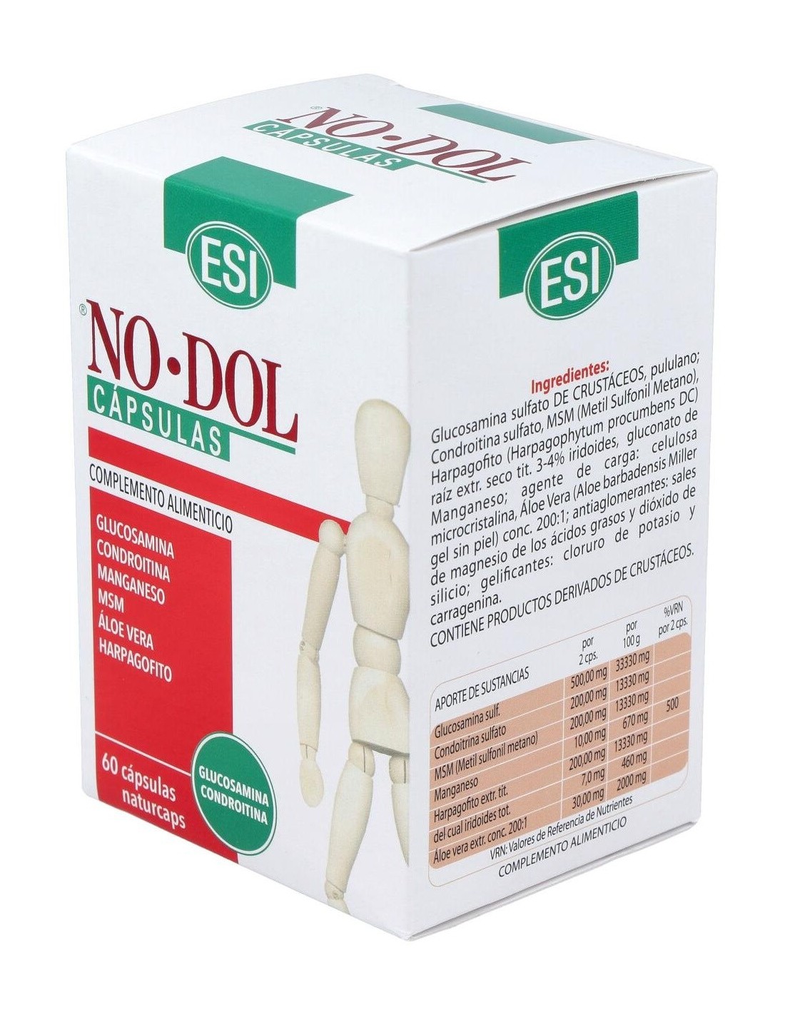 ¿Tienes el cartílago desgastado o sientes cómo tus articulaciones se debilitan? Las cápsulas NO DOL de ESI son un complemento alimenticio que ayuda a reducir los dolores articulares, así como también previene sus molestias y las mantiene fuertes. Indicado para tratar lesiones en los cartílagos o problemas articulares graves como artrosis, artritis o reumatismos.