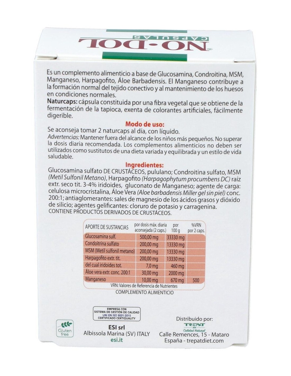 ¿Tienes el cartílago desgastado o sientes cómo tus articulaciones se debilitan? Las cápsulas NO DOL de ESI son un complemento alimenticio que ayuda a reducir los dolores articulares, así como también previene sus molestias y las mantiene fuertes. Indicado para tratar lesiones en los cartílagos o problemas articulares graves como artrosis, artritis o reumatismos.