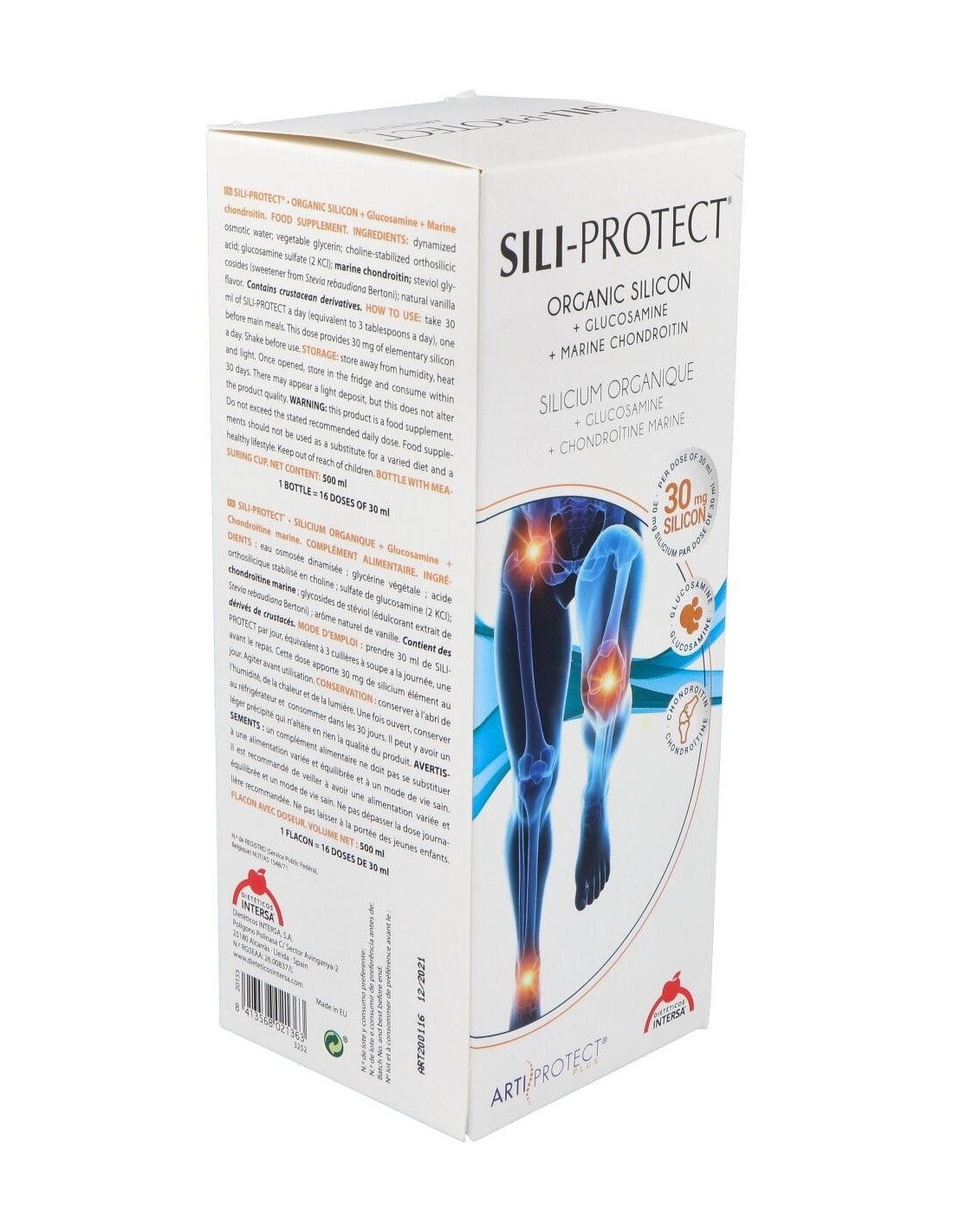 Aporta silicio, glucosamina y condroitina marina en formato bebible.