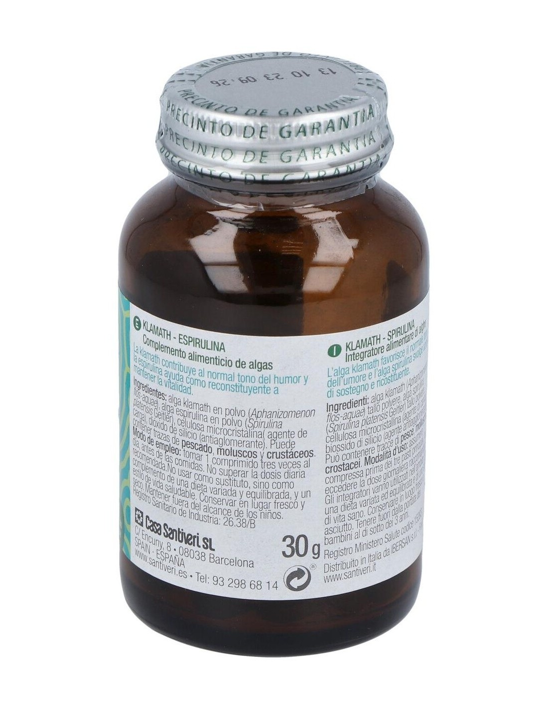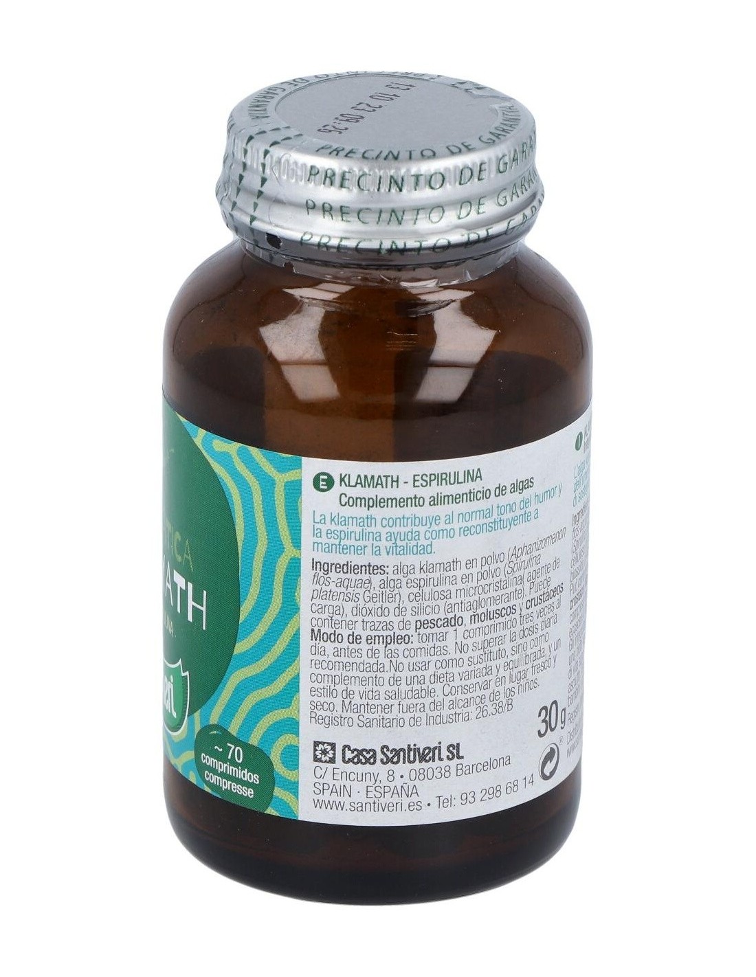 Complemento alimenticio con alga Klamath, que contribuye al normal tono del humor y espirulina, que ayuda como reconstituyente a mantener la vitalidad. Apto para veganos.