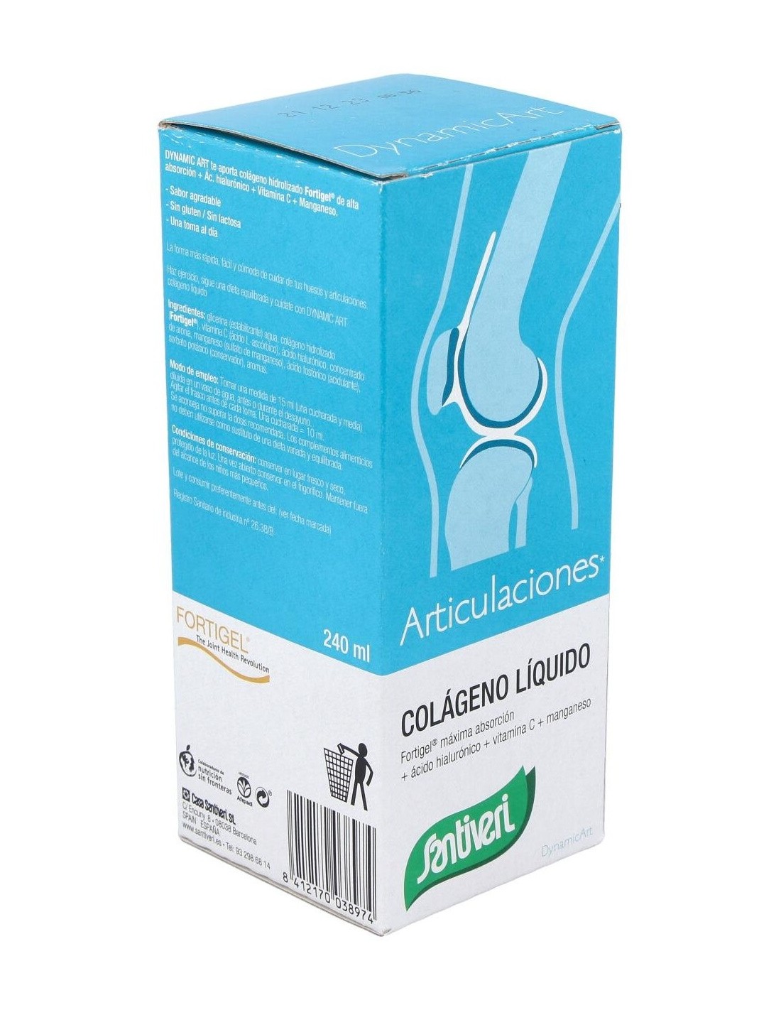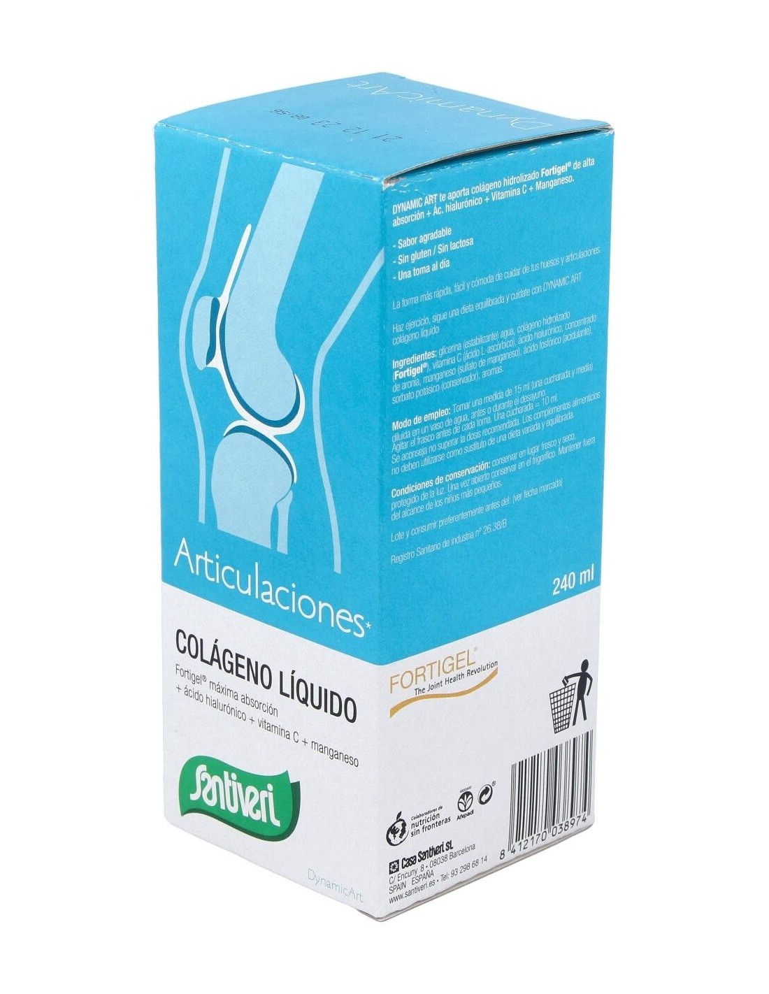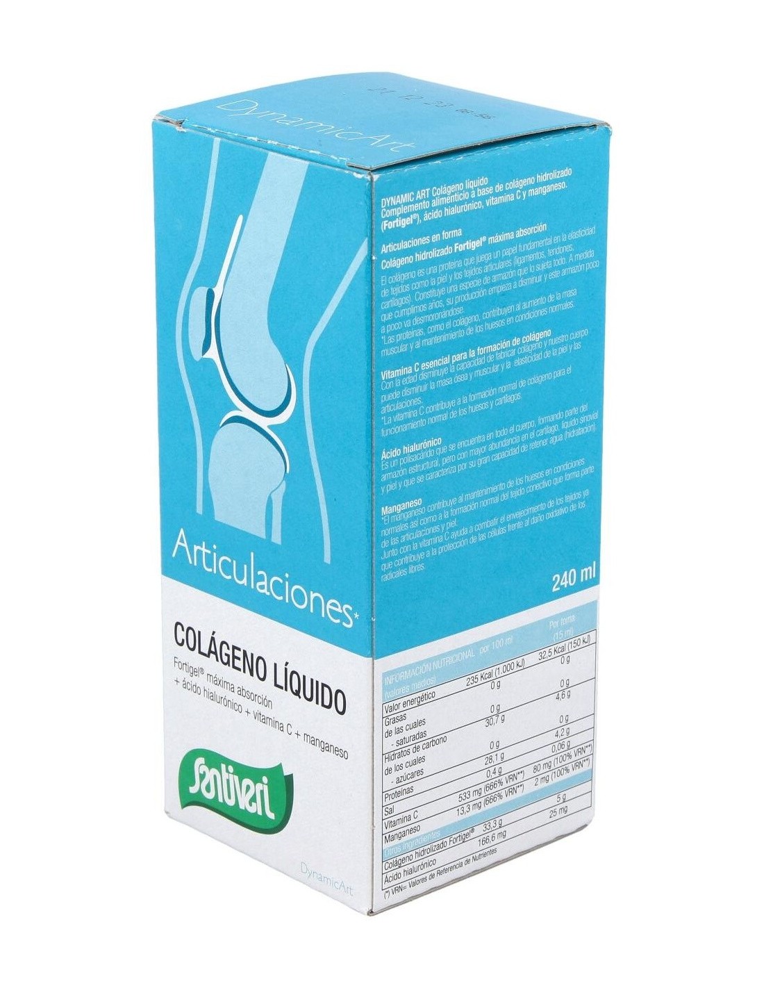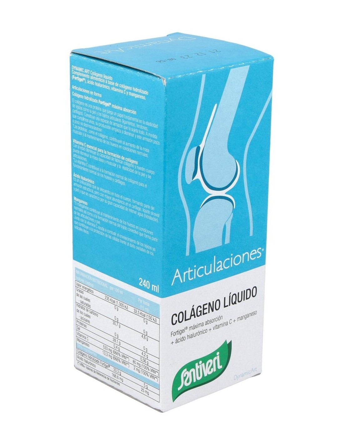 Santiveri Colágeno Líquido Articulaciones 240 Ml es un jarabe líquido con vitamina C, ácido hialurónico y magnesio. Estos componentes refuerzan y protegen los huesos y articulaciones.