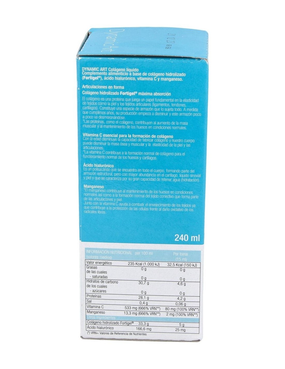 GLICERINA (ESTABILIZADOR), AGUA, COLÁGENO HIDROLIZADO (FORTIGEL), VITAMINA C (ÁCIDO L-ASCÓRBICO), ÁCIDO HIALURÓNICO, CONCENTRADO DE ARONIA, SULFATO DE MANGANESO, ÁCIDO FOSFÓRICO (ACIDULANTE), SORBATO POTÁSICO (CONSERVADOR), SUCRALOSA (EDULCORANTE), AROMA.