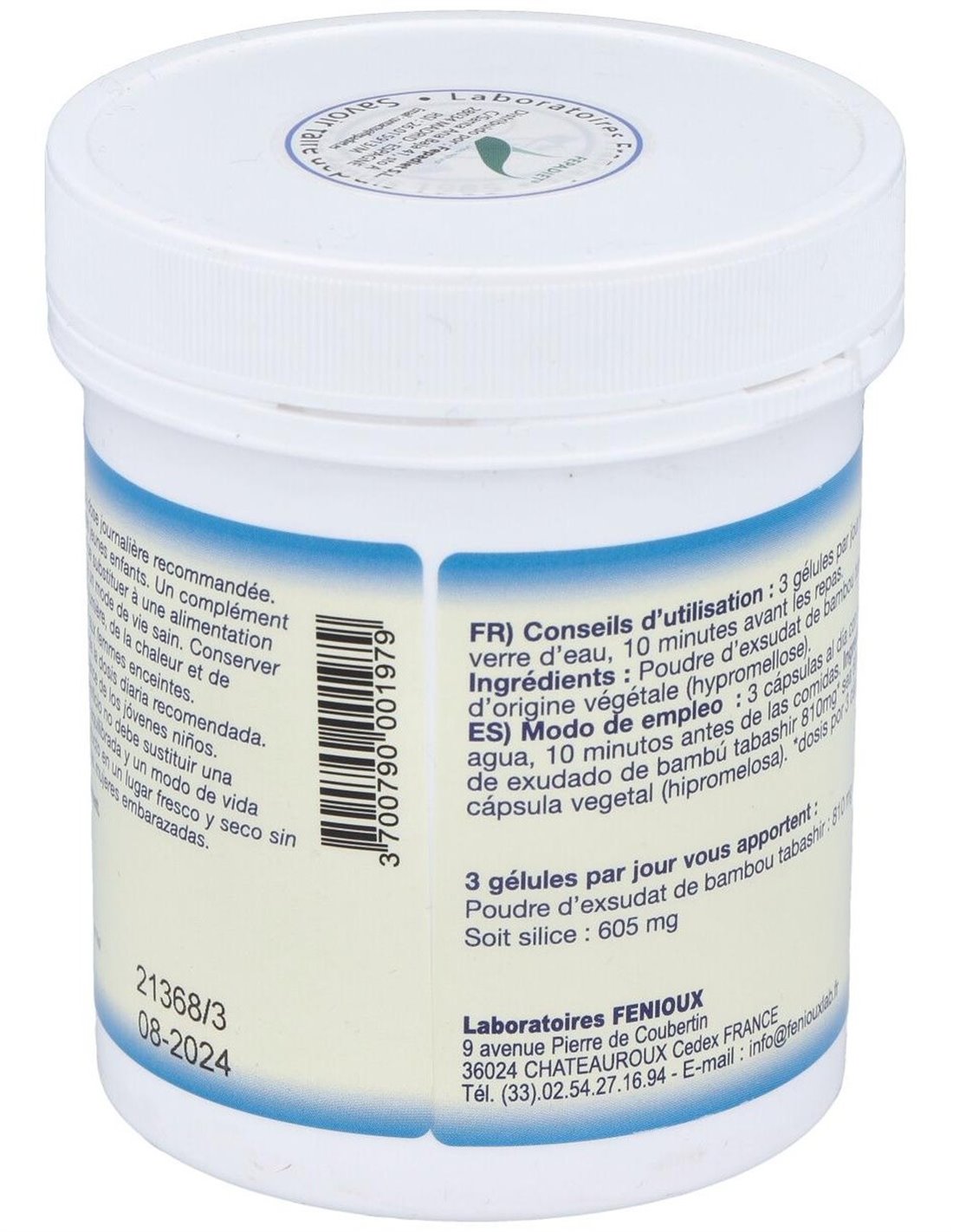Bambú tabashir (810 mg), Silicio (605 mg).