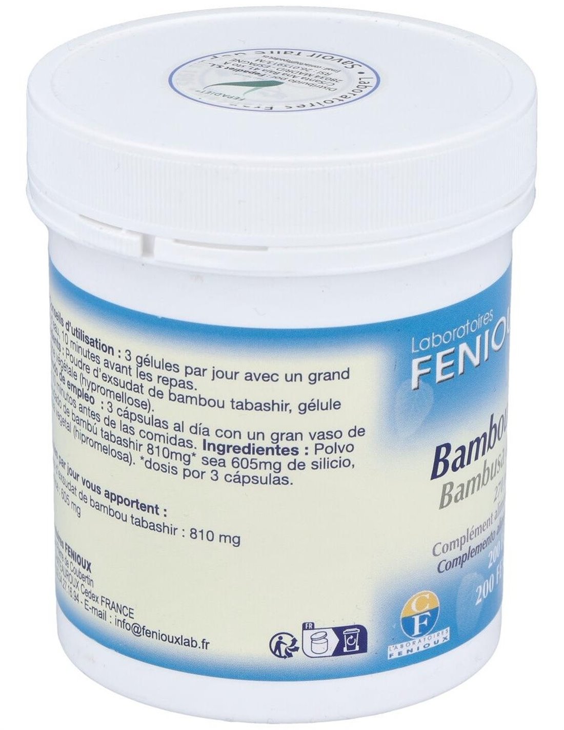 El tabashir de bambu de Fenioux contiene silicio. El silicio es un oligoelemento presente en los tejidos principales para apoyar a nuestro cuerpo, como los músculos, los huesos o cartílagos. Con la edad, a menudo hay una pérdida de densidad ósea y una disminución en la concentración de silicio.